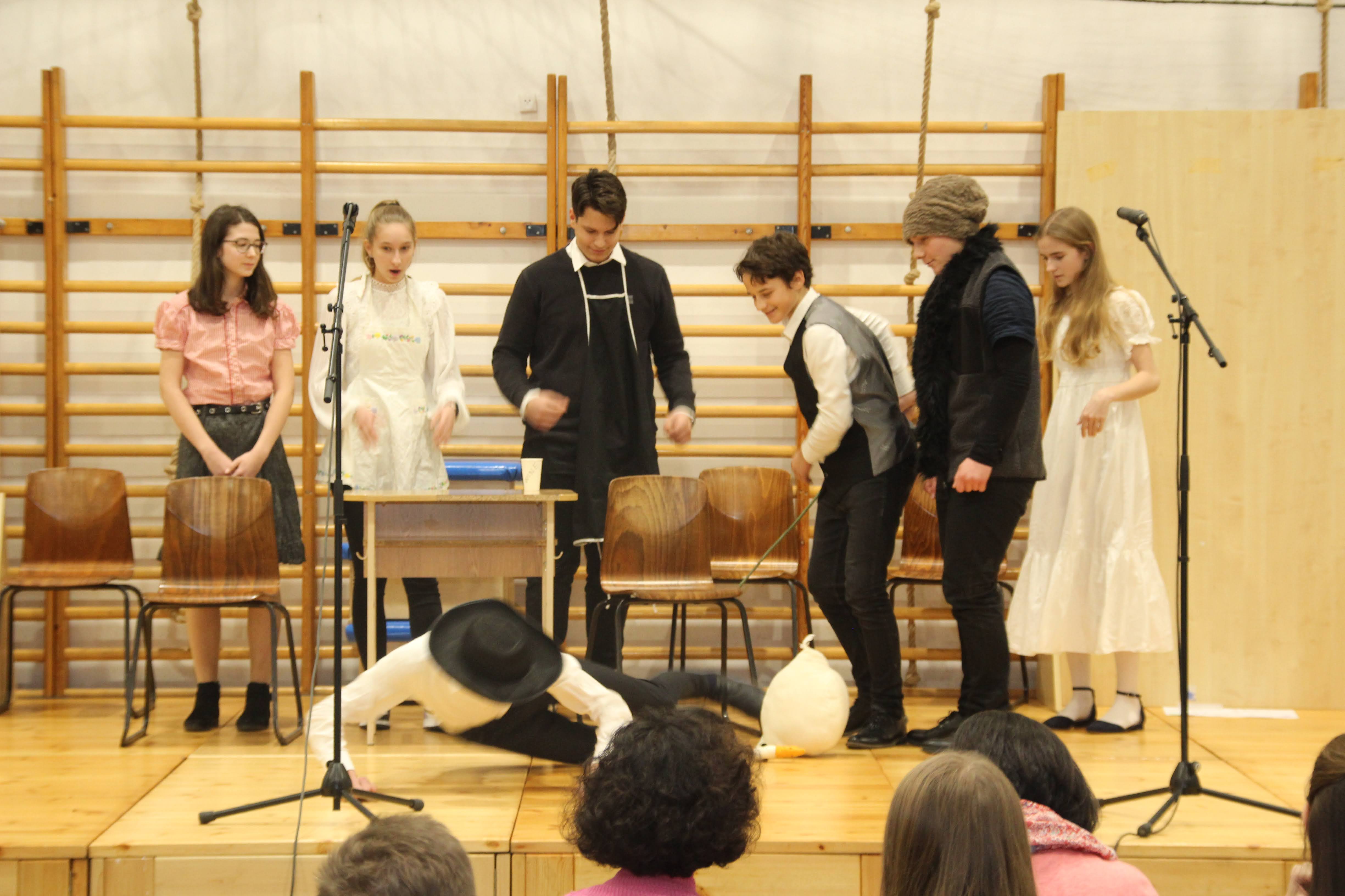 A téli szünet előtti utolsó pénteken rendeztük meg a nyelvi délutánt az iskolában. Kicsik és nagyok, nézők és szereplők egyaránt lelkesen vettek részt az eseményen. A jeleneteket követő teaház is sokakat vonzott; nem csoda, hisz itt lehetett megkóstolni a sütisütő verseny díjazott süteményeit is!