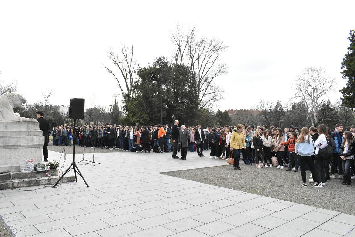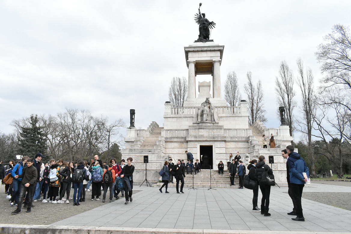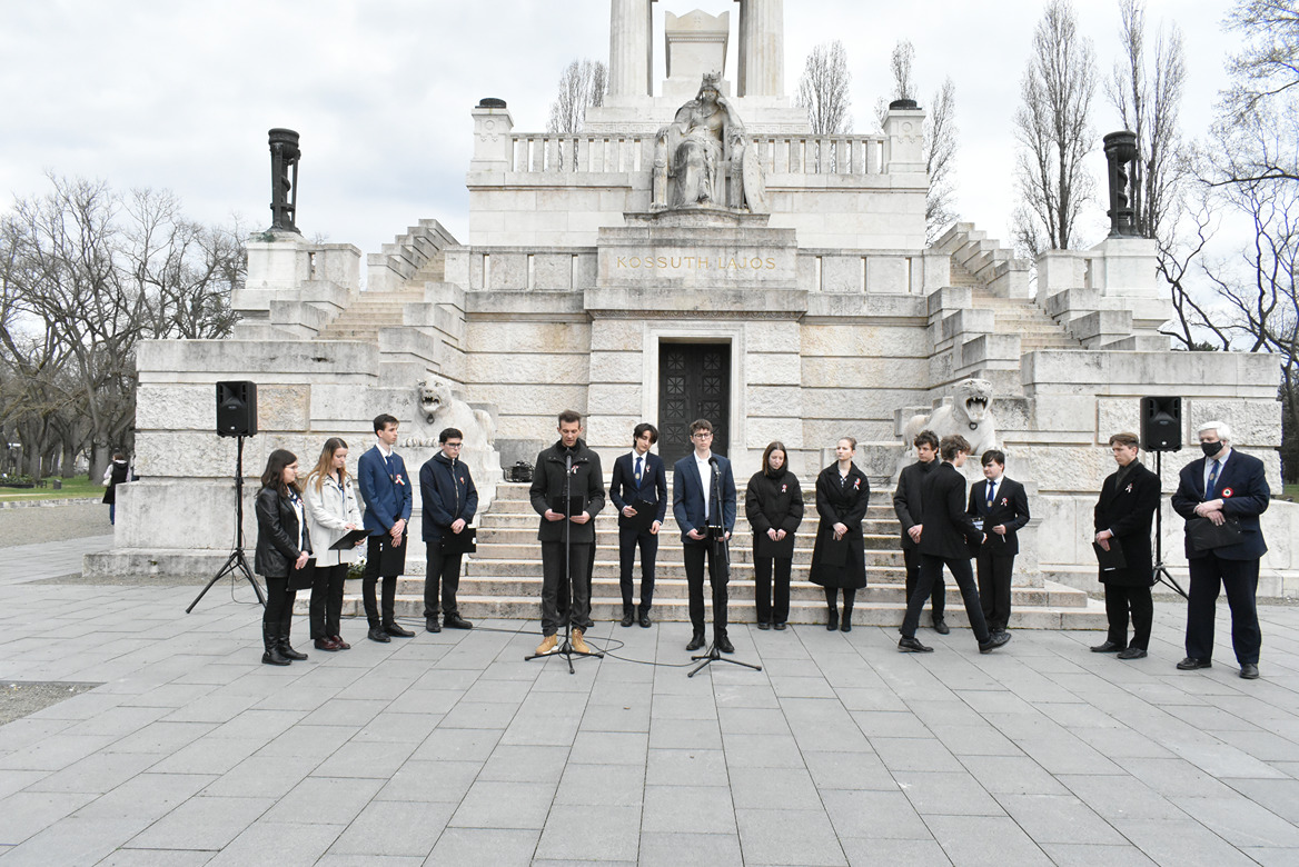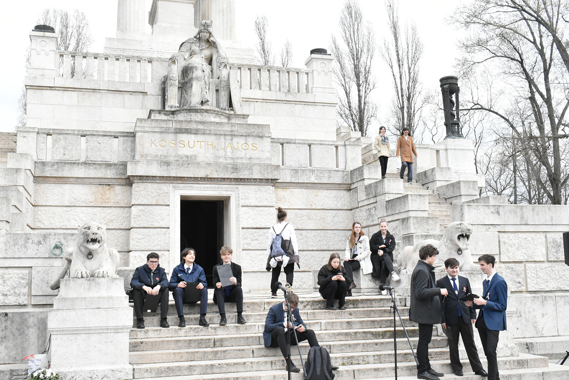Nemzeti ünnepünkről a Gimnázium tanulói a Fiumei úti temetőben, a Kossuth mauzóleum előtt emlékeztek meg. A műsort Kerekes Barnabás tanár úr állította össze Széchenyi István és Kossuth Lajos gondolataiból, melyeket a 11.c és 11.d osztály tanulói olvastak fel.