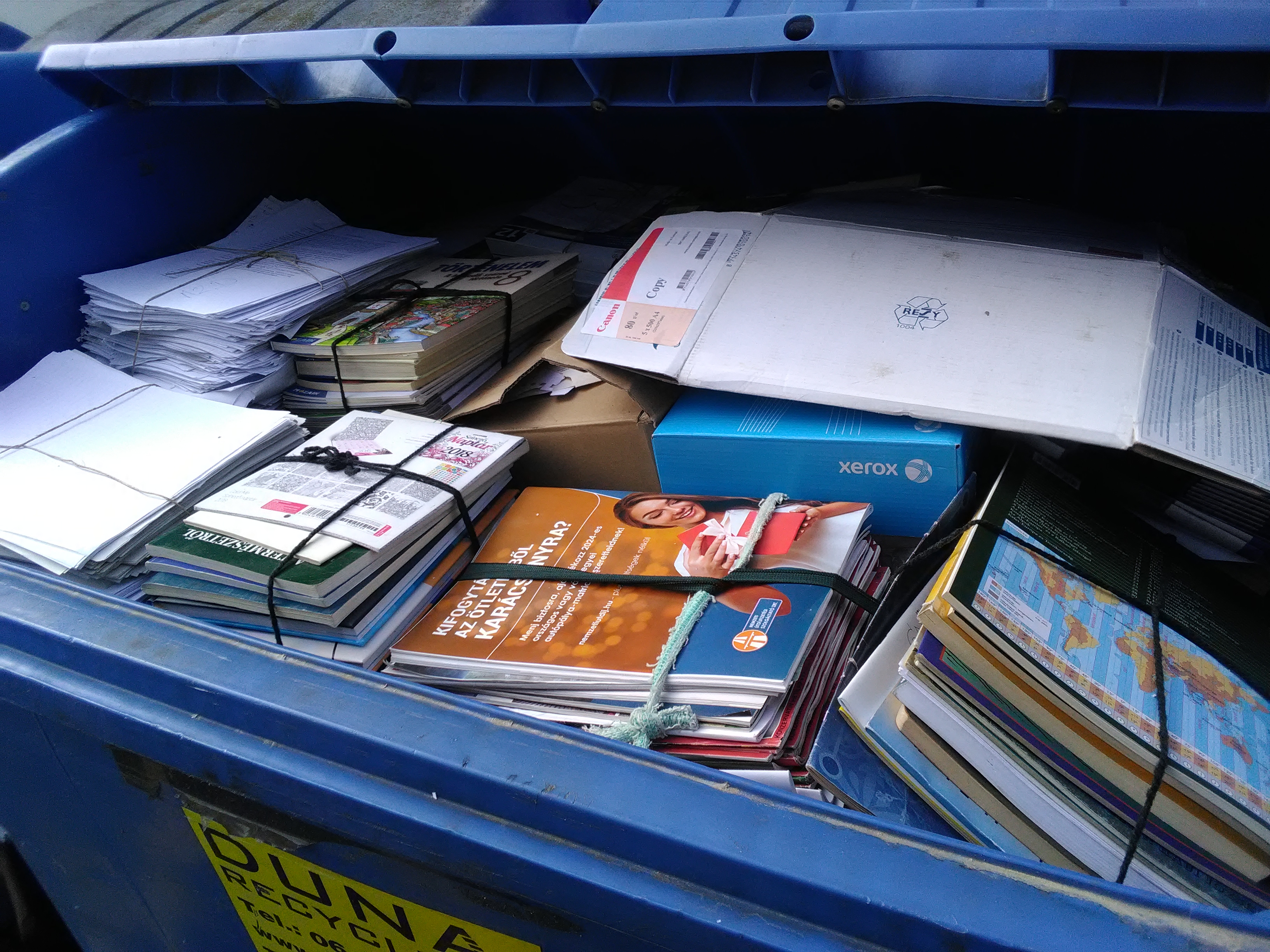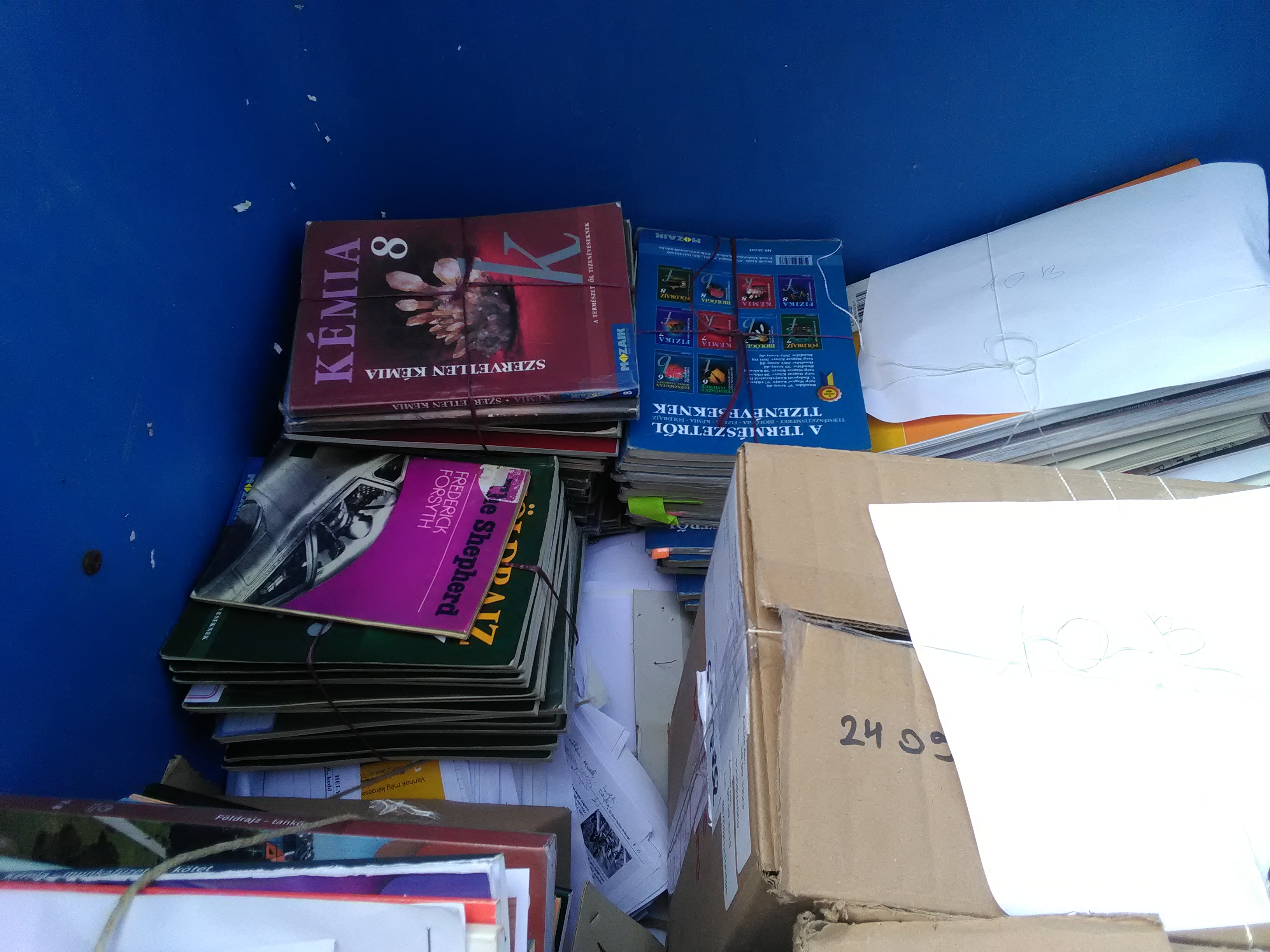 Ugyanakkor az összegyűjtött hulladékpapír nagyobbik fele házon belülről érkezett. A könyvtárat sikerült megszabadítani az évek során összegyűlt forgalomból kivont tankönyvek tömegétől, a titkárságot a felesleges irathalmoktól, és jó pár tanár szekrényét a felhalmozódott papíroktól. Viszont a kidobott könyv és sokszor szinte használatlan tankönyvhegyek látványa elkeserítő volt. Sovány vígaszt jelent, hogy nem vesznek kárba, újra papír, esetleg tankönyv lesz belőlük…