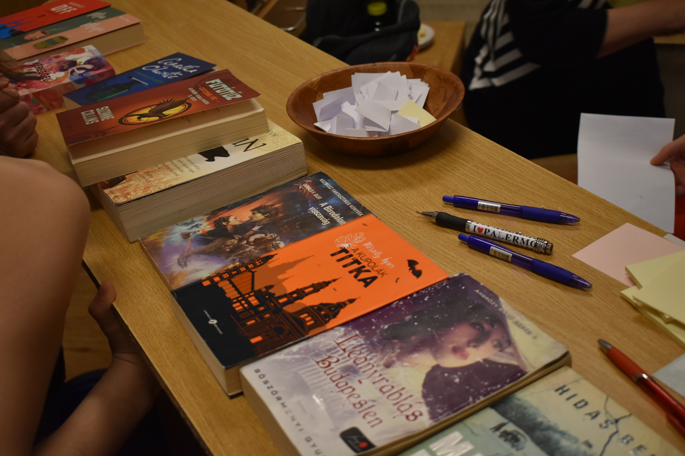 A megközelítőleg 50 fős társaság izgatottan várta a minden évben megtartott program kezdetét. Az elején egy ismerkedő körrel tudtunk meg többet egymásról, amit az Olvasókör vezetett. Mindenki a neve mellé mondott egy könyv címet, ami a kedvence, illetve egy könyves karaktert, akivel azonosulni tudott. A második részében egy könyves világhoz kötődő kifejezést kellett írnia mindenkinek egy kis cetlire, amiről a többieknek meg kellett tippelni, ki írhatta.