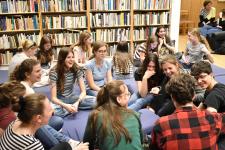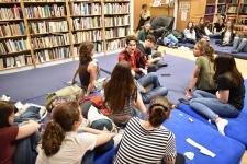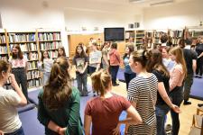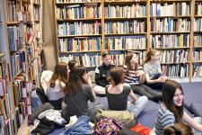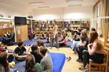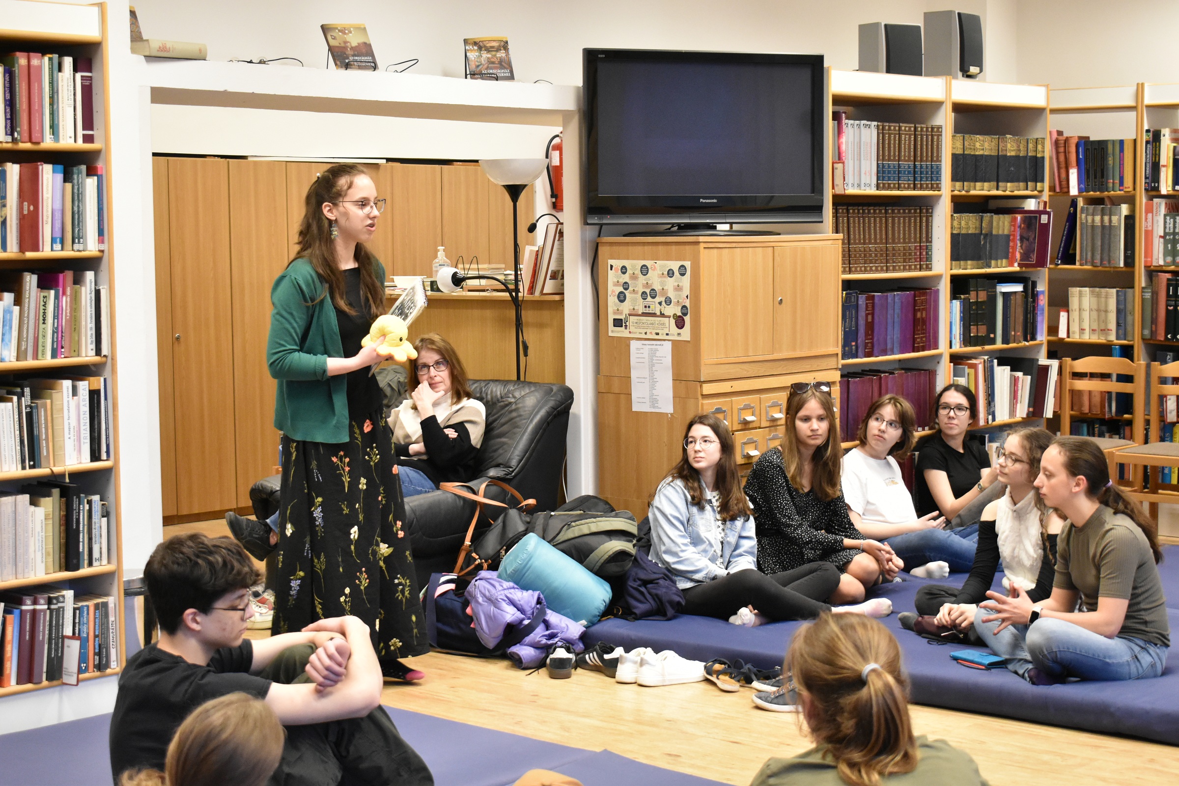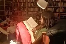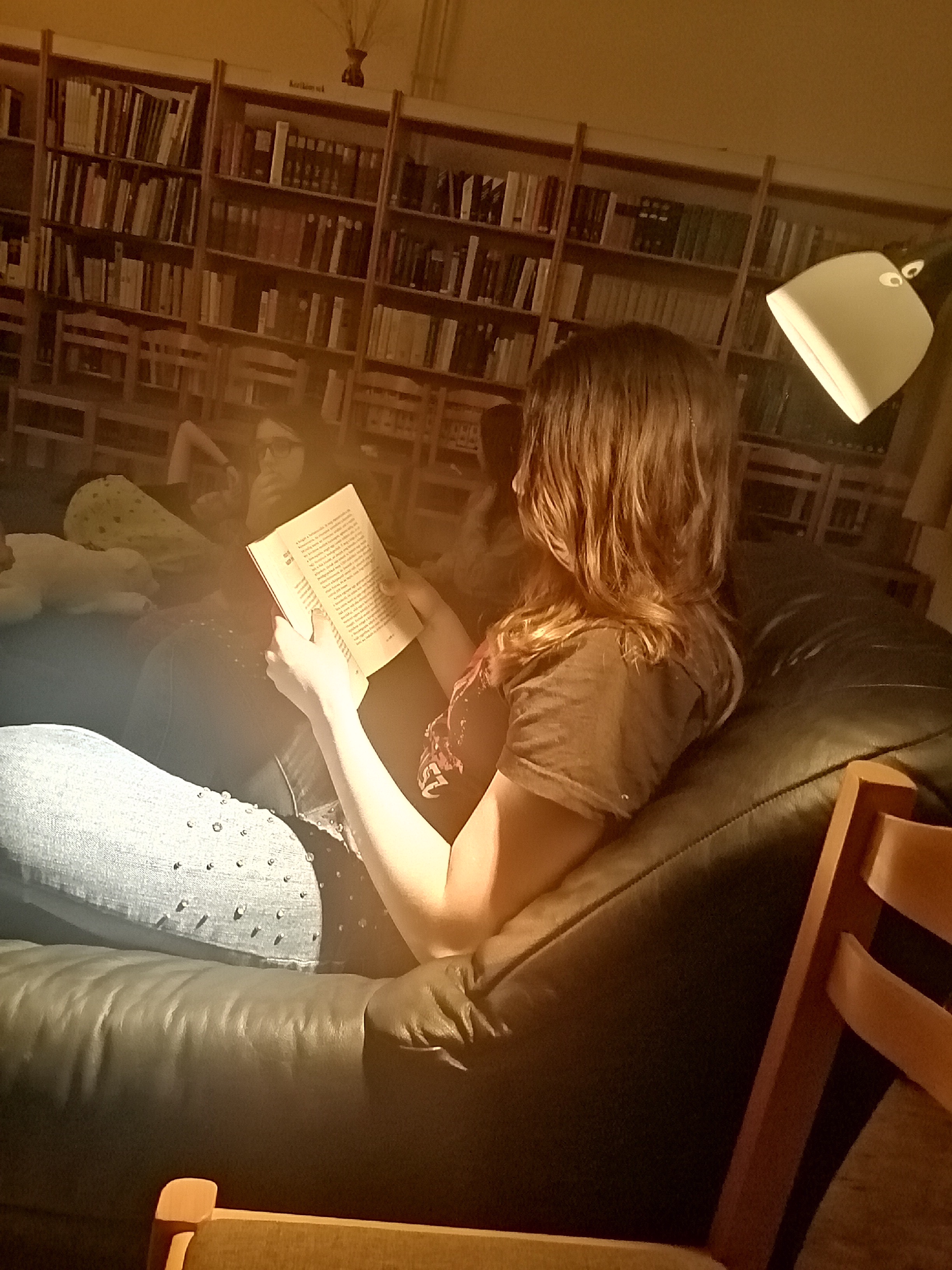 Az idén megrendezett Olvasás Éjszakájára is szép számban jelentek meg a gimnázium könyvtárában az iskola diákjai. Péntek este gyülekeztünk az olvasóteremben, és mindenki elfoglalt egy kényelmes helyet a már előre elhelyezett szivacsokon.