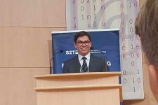 Azonban nem csak az eredményhirdetés pillanatában lépett Baár-Madasos a színpadra: a verseny hivatalos megnyitóján neves professzorokon, kutatók mellett Bencz Benedek is beszédet mondott (fizikus olimpikonunk tavaly ugyanitt a második helyen végzett csapatával).
