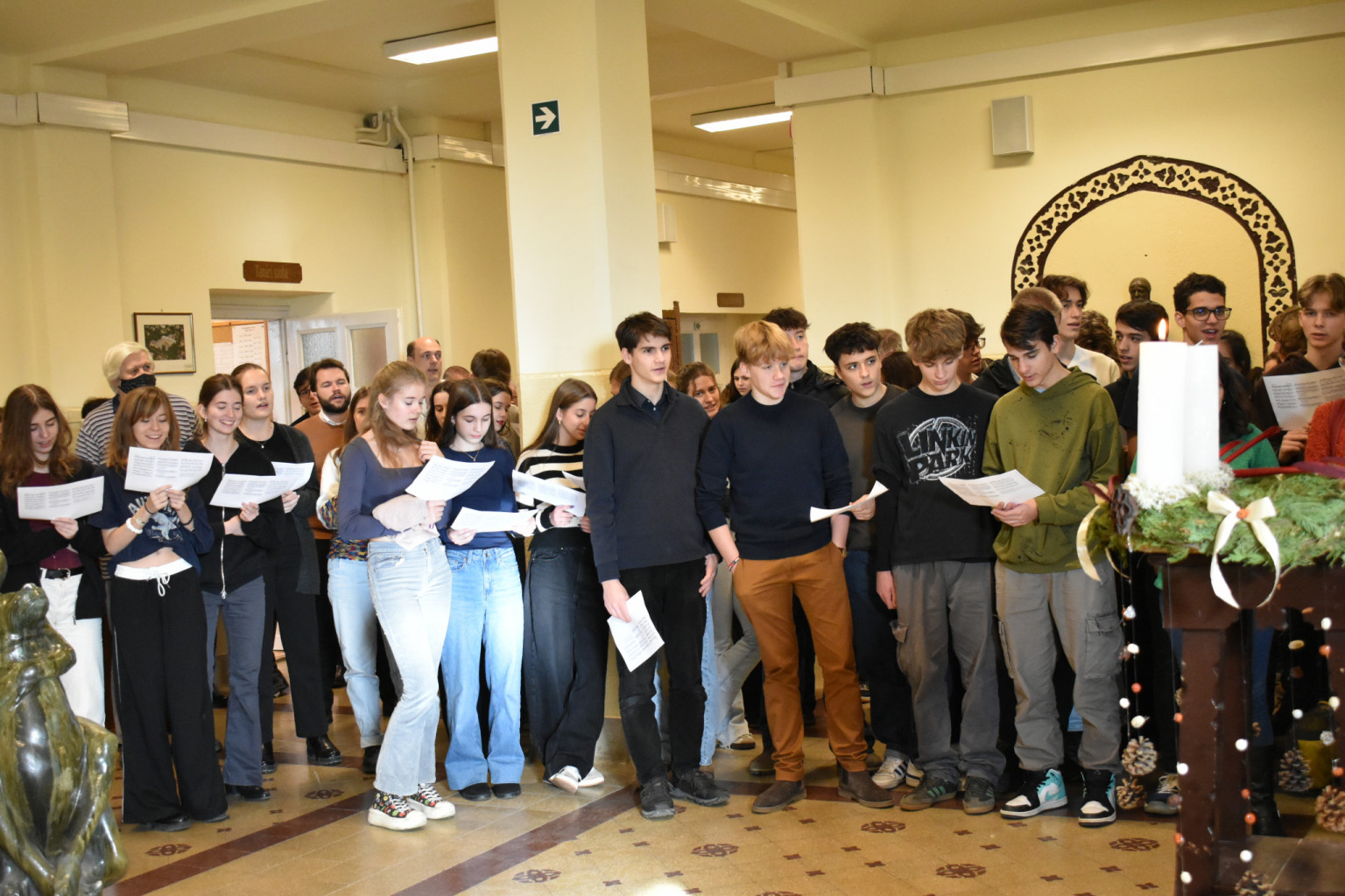 Idén is jó volt együtt énekelni és az iskola első emeleti auláját megzengetni a kedves és jól ismert énekek soraival. Tanárok és diákok együtt, közösségben. A gyertya fénye talán egy nagyobb világosságot is felidézhetett számunkra. Úgy fest, hogy a boldogan éneklő diákok és tanárok és dolgozók bátran merték komolyan venni a próféta buzdítását: "Kelj fel, tündökölj, mert eljött világosságod, rád ragyogott az Úr dicsősége." (Ézsaiás 60,1) Jó volt ebben a fényben együtt lenni és együtt ragyogni. Várjuk egy hét múlva a következő ünnepi megállást közösségben.