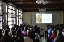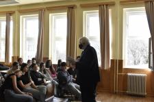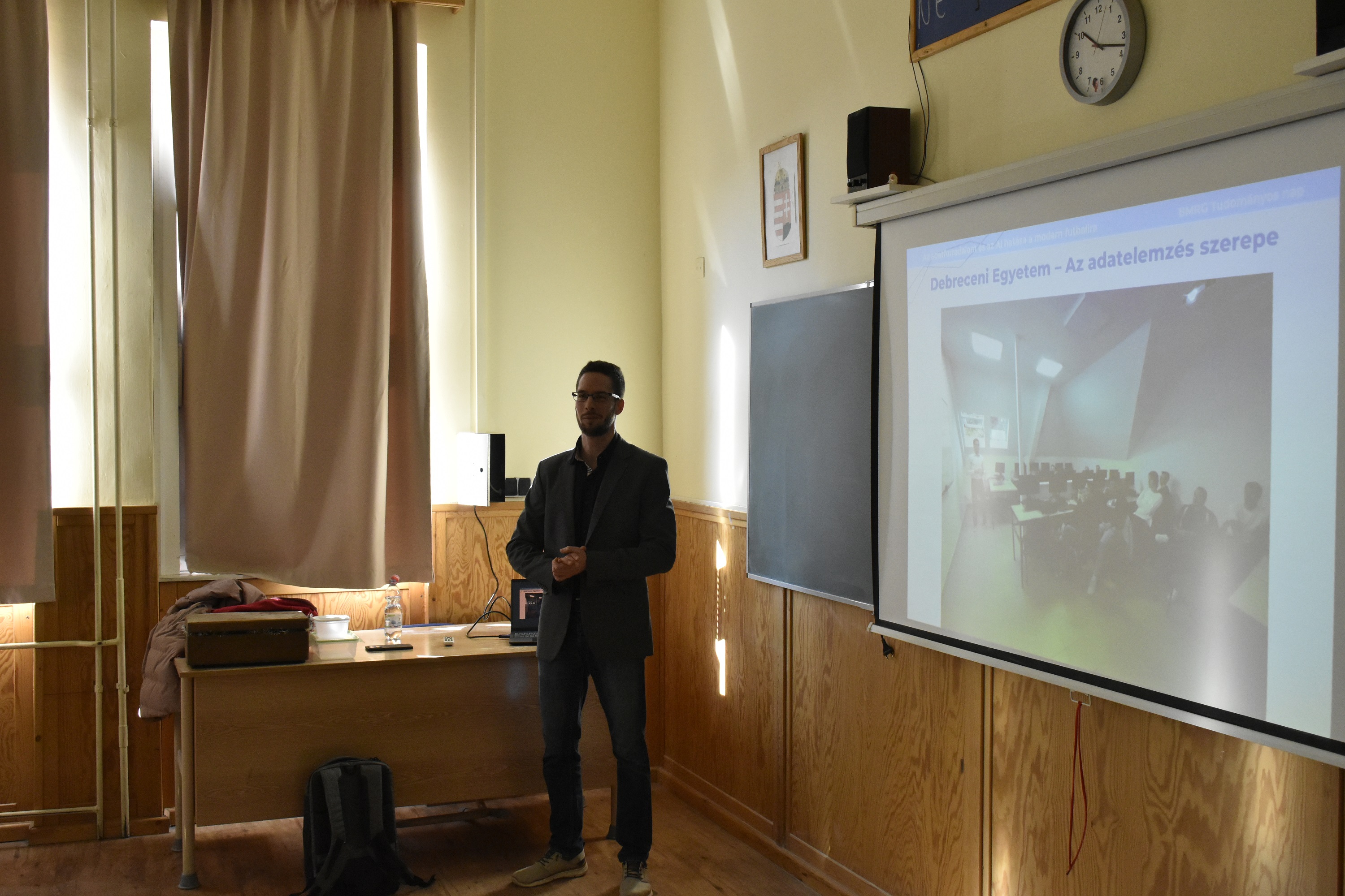 A nyelv valóban életté tud válni? Vagy csupán arra való, hogy a világ különböző dolgait felcímkézzük? Ilyen, és ehhez hasonló kérdésekre kaptunk választ Dr. Tátrai Szilárd, az ELTE Bölcsészettudományi Kara tanszékvezetőjének és a neves krakkói Jagelló Egyetem oktatójának rendkívül érdekes előadásában. Egy alaposan és részletesen kidolgozott prezentáció segítségével merültünk bele a magyar nyelv sokszínűségébe, és tanulmányoztuk használatát a mindennapokban. Olyan témákat érintettünk, mint például a nyelvhasználat, mint adaptív emberi tevékenység, vagy szóba került a jelentésképzés és annak fajtái, perspektivikussága. Az előadást még színesebbé és érthetőbbé tették a hétköznapi példák, illetve az olykor közbeékelt viccek, humoros idézetek is. Sok új ismeretre tehettünk szert, és talán mindannyiunk nevében mondhatom, hogy a rendkívül figyelemfelkeltő előadásnak köszönhetően mélyebb bepillantást nyerhettünk és rácsodálkozhattunk anyanyelvünk szépségeire és rejtelmeire. (Balázs Lilla 9. b)
