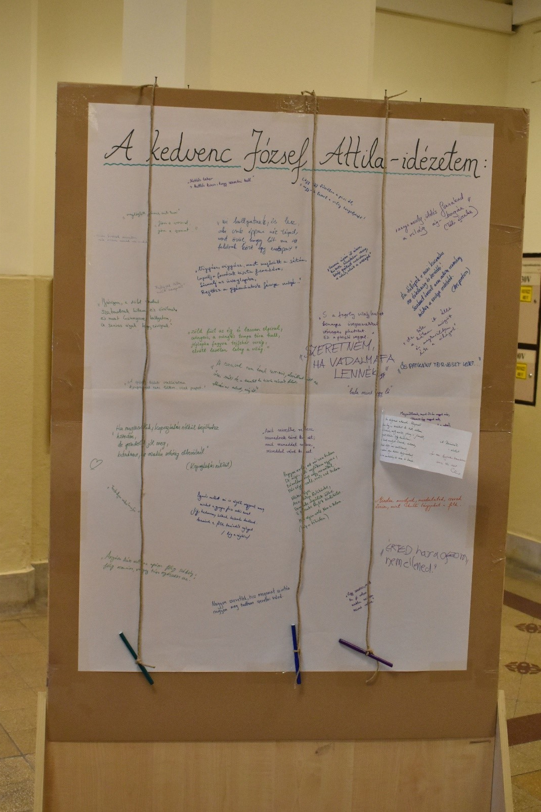 A rövid megemlékezésen két megzenésített verset énekeltünk el közösen (József Attila: Születésnapomra, Radnóti Miklós: Bájoló), amelyeket még Pongor Gábor tanár úr tanított meg a diákoknak énekórán, így e dalok ma az ő emlékére is szóltak…