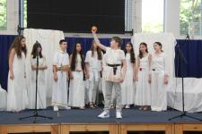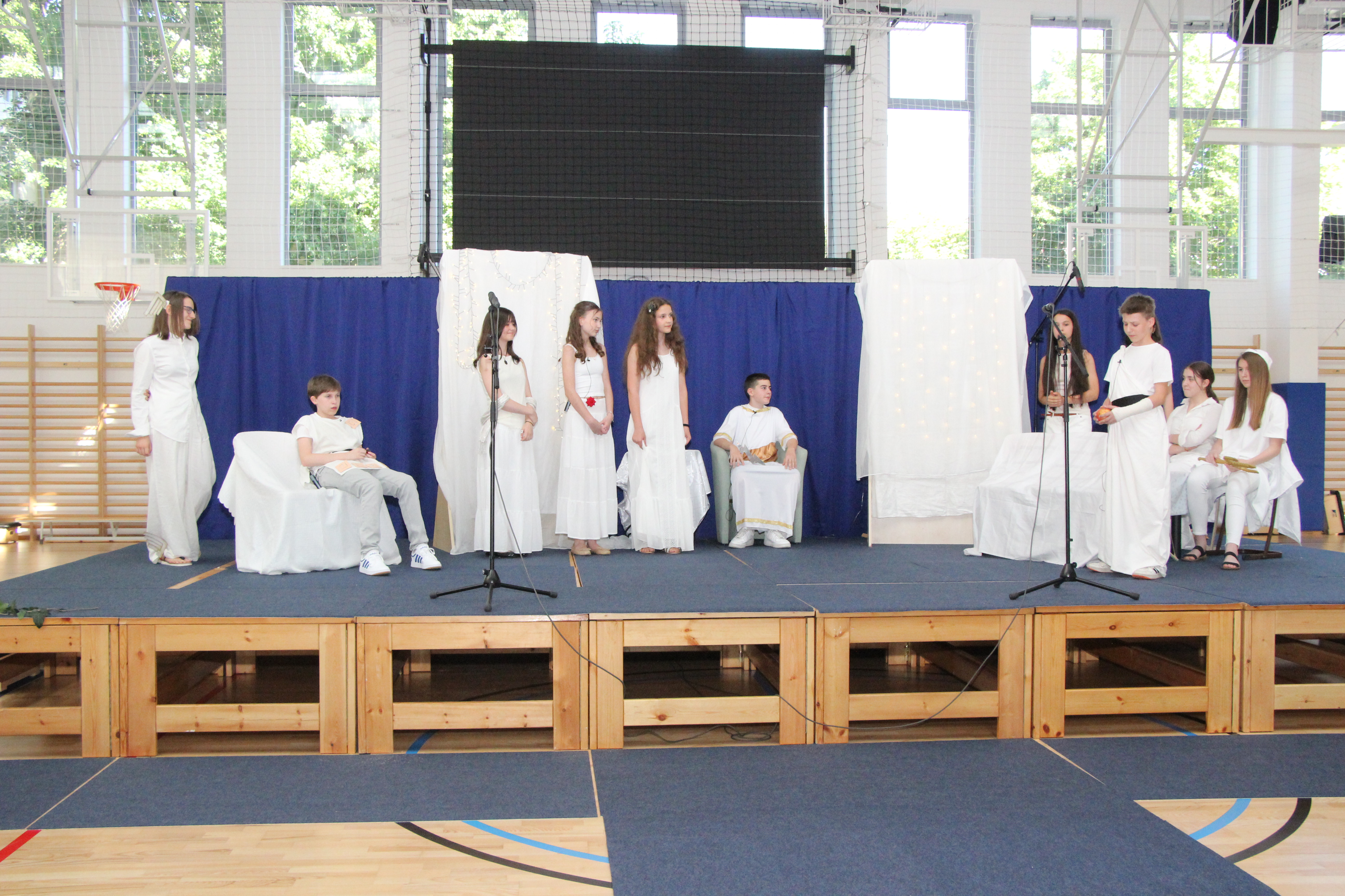 Élvezetes, bátor, lendületes előadást láthattunk az újonc 7.b osztálytól. Berg Judit görög mitológiai témájú művét, a Párisz ítéletét vitték színre, elnyerve a közönség elismerését.