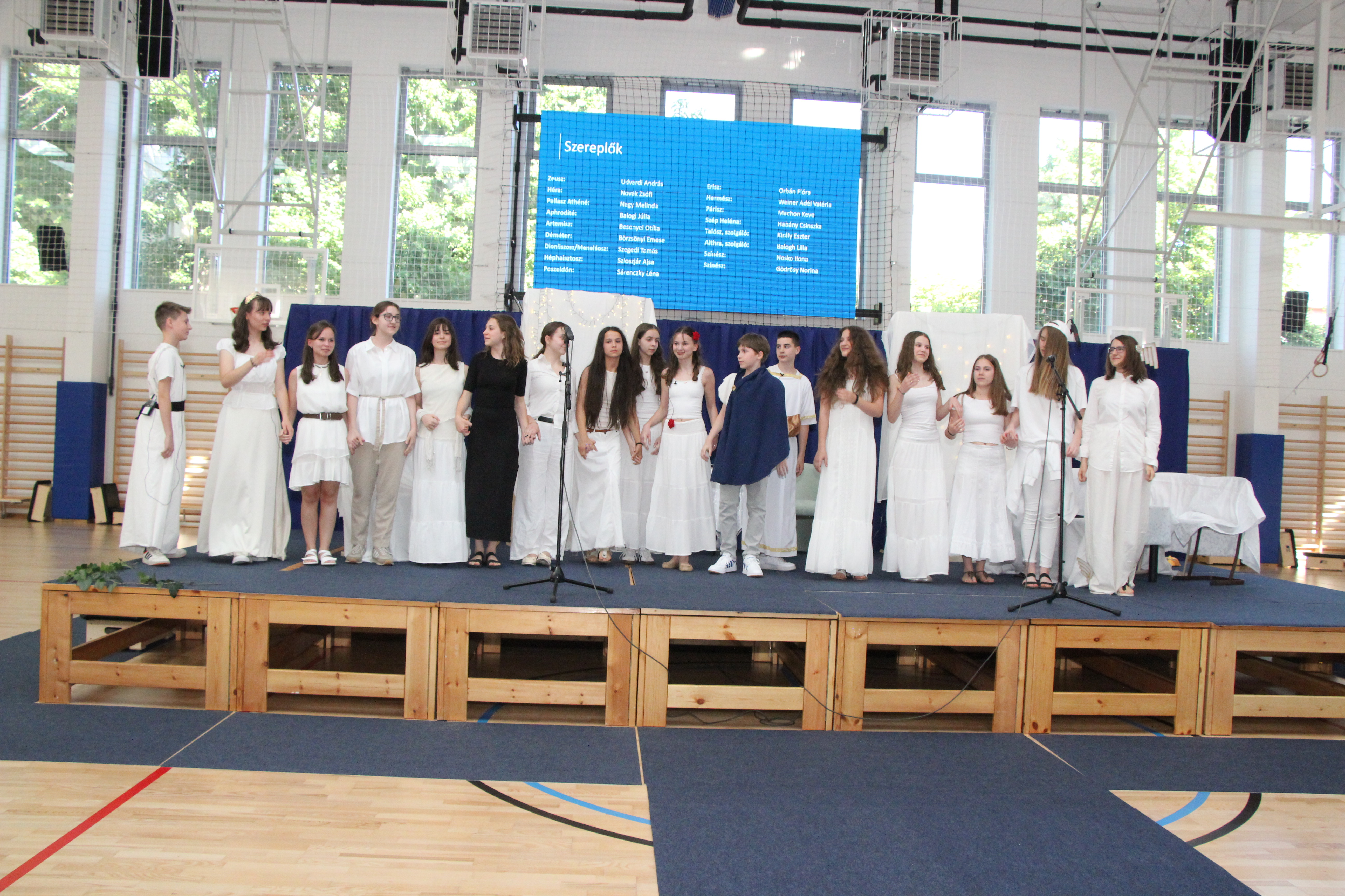 A 8.b osztály ismét magas színvonalú, nagyszabású produkcióval állt színpadra. Szabó Magda Abigél című művének részletét érzékenyen, sokoldalúan, a műhöz méltóan mutatták be.