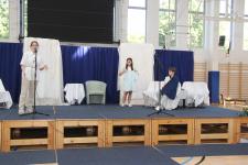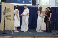 A 9.b osztály diákjai Shakespeare Szentivánéji álom című drámájából Pyramusz és Thiszbe felettébb szomorú komédiáját adták elő. A csoport tagjai felnőttek a nem könnyű feladathoz, és fantasztikus, élvezetes színészi alakításokkal bizonyították tehetségüket.
