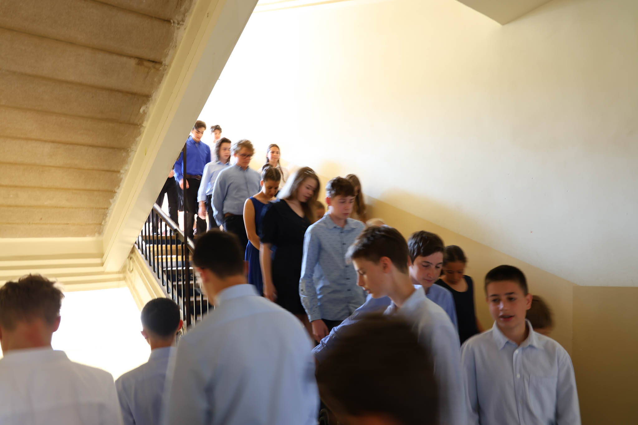 A közös áhítat után, a rendezvény első felében az alsóbb évfolyamosok vettek búcsút a végzősöktől. Kedves performanszokkal köszönték meg a közös éveket, és kívántak sok sikert a továbblépéshez. Molnár Tímea intézményegység-vezető ünnepi beszédében kiemelte az évfolyam különlegességét, az együtt megélt sikereket és kihívásokat, valamint hangsúlyozta a tanulás és az emberség fontosságát a jövőbeni életút során.