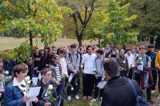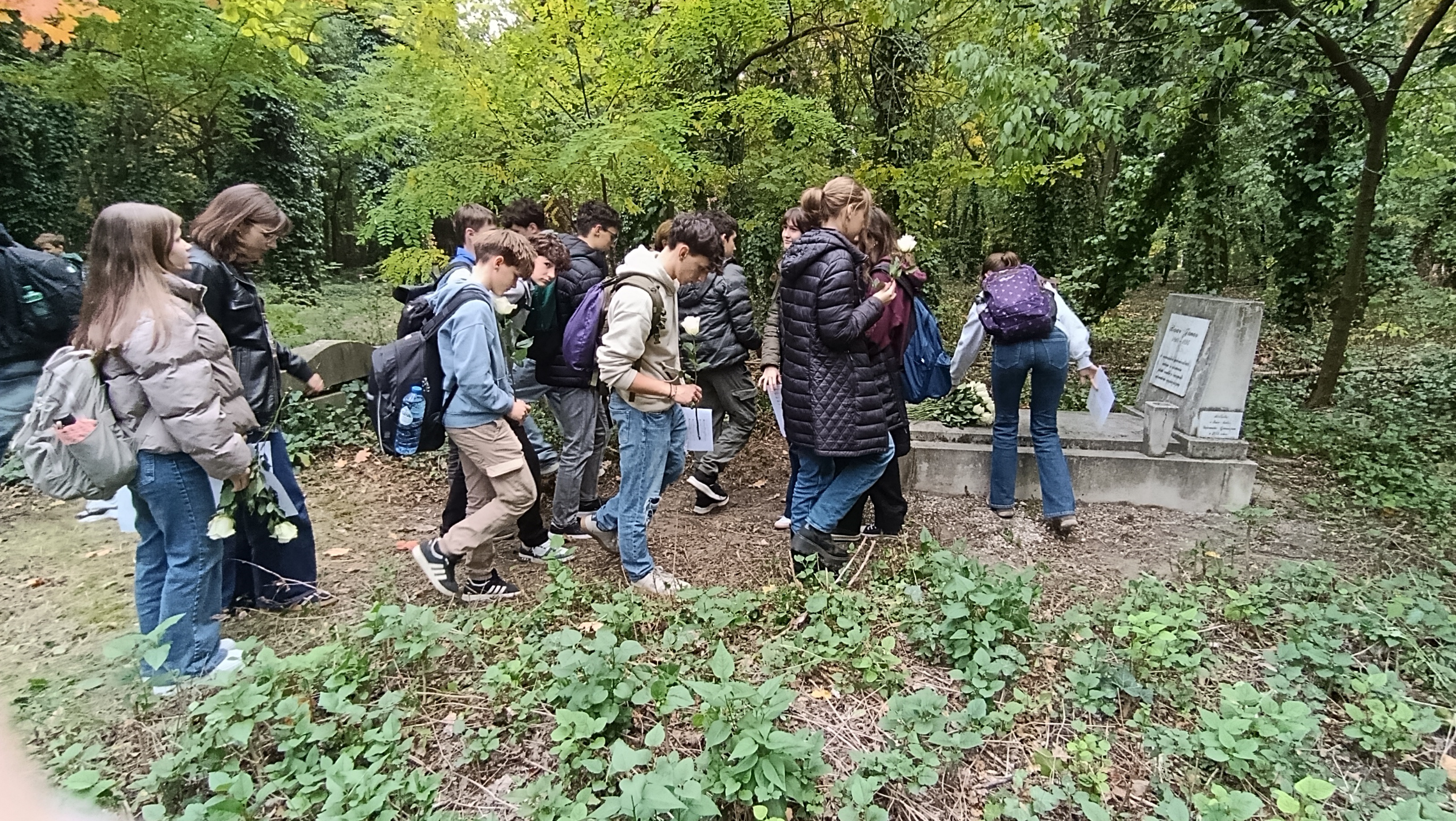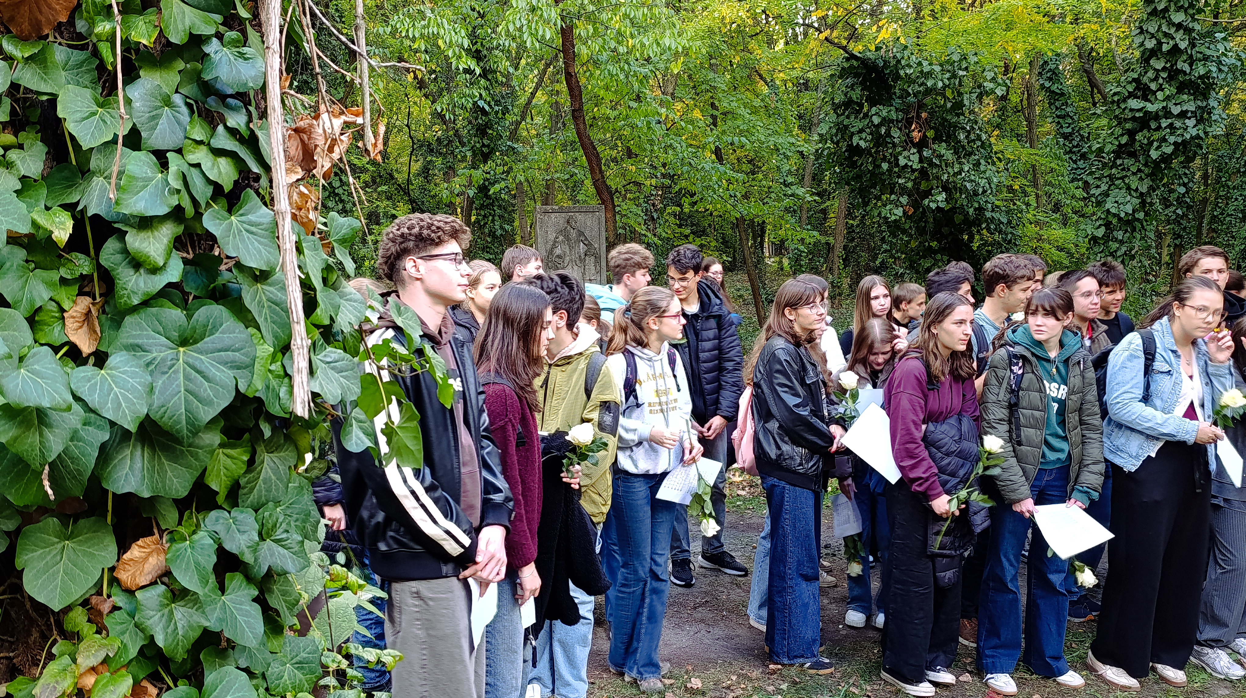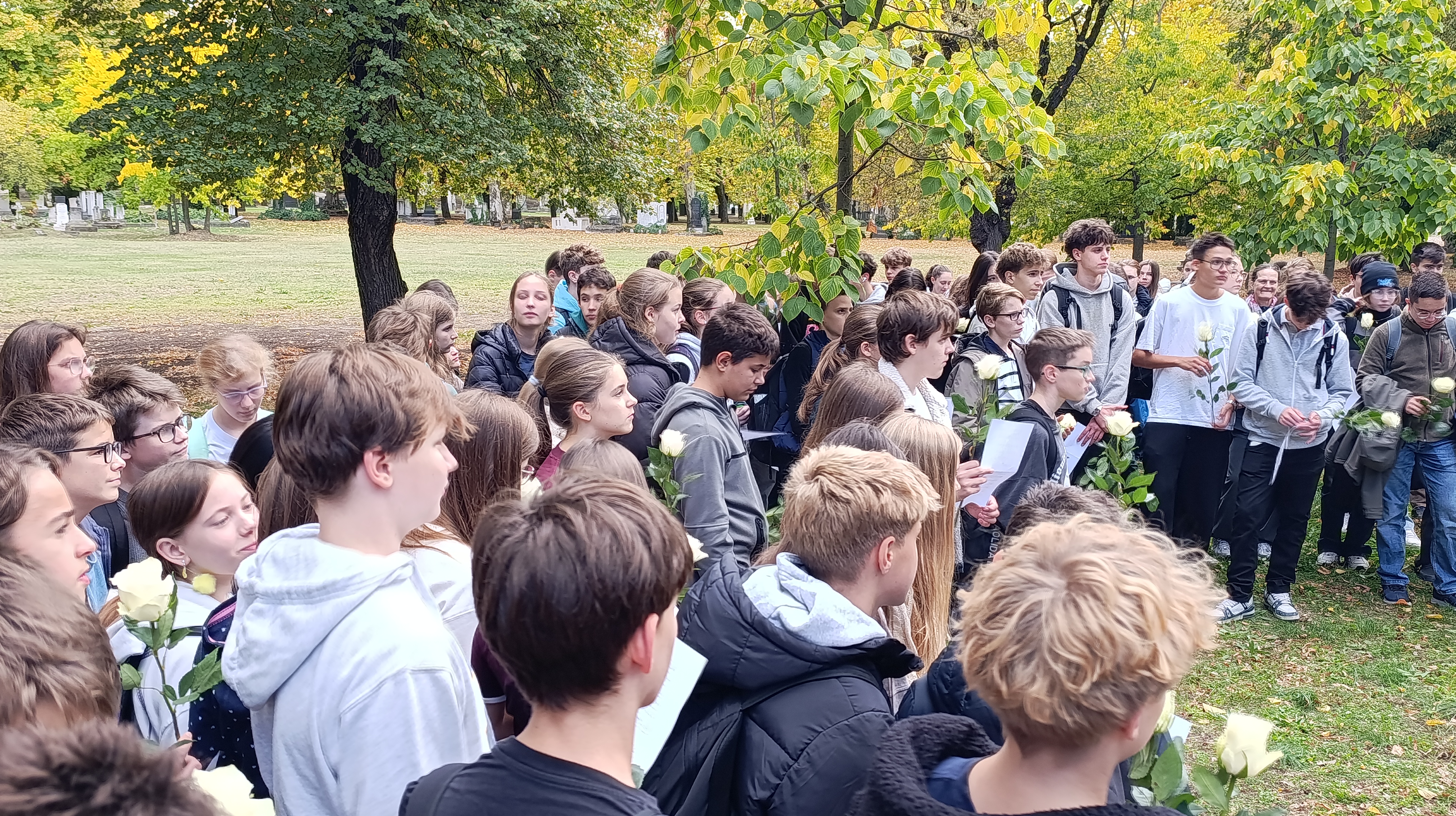 Szép hagyományt folytattunk hétfőn, amikor az induló új hetedik és a két kilencedik osztállyal együtt a Fiumei úti Nemzeti Sírkertben tettünk látogatást az alapítók síremlékénél. Madas Károly obeliszkjénél meghallgathattuk az élettörténetet, majd Tombor László igazgatónk mondta el gondolatait arról, hogy mennyire fontos felelősen gondolkodni vagyonról, örökségről, lehetőségekről előre, ráadásul úgy, hogy az örökhagyó polgár a gimnázium alapításáról mit sem tudhatott már. A jelenlévőkhöz fordulva kifejtette, hogy senki sem tudhatja közülünk, hogy egykor milyen nemes és előremutató ügyet tudhatunk szolgálni - de ehhez kell egy belső tartás, szilárd erkölcsi-hitbeli meggyőződés is. A 90. zsoltár eléneklése után a megemlékezés virágait helyeztük el a síron.