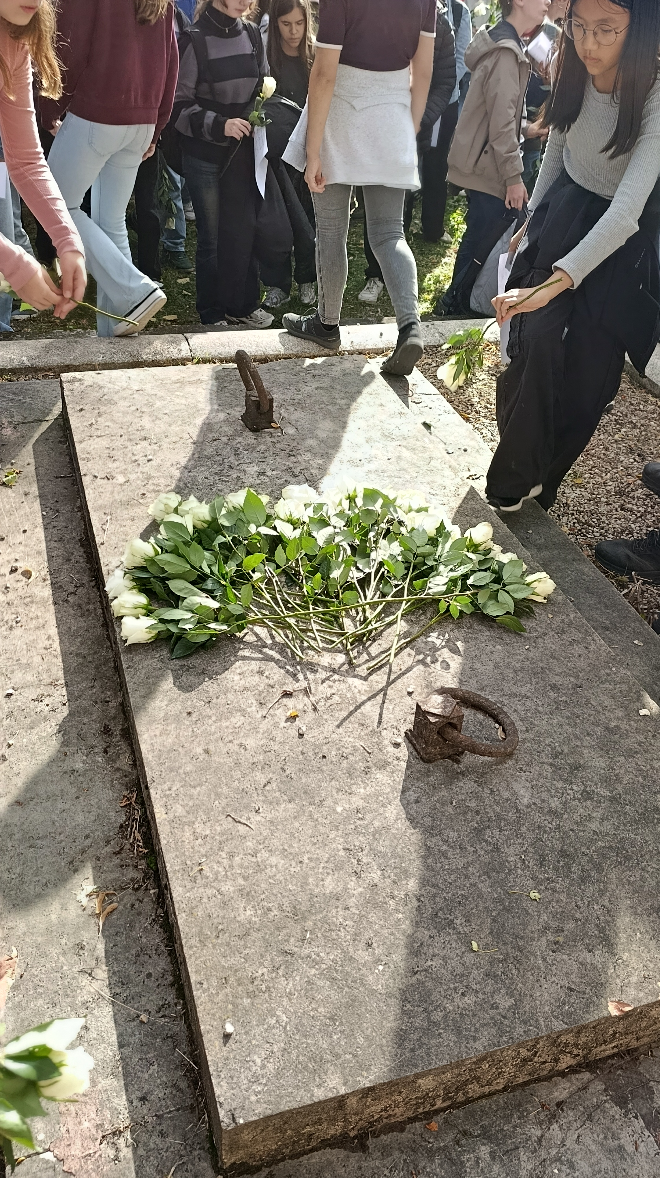 A temető másik, ritkábban látogatott szárnyában található Baár János sírja, ahol Székely Tamás iskolalelkészünk a Thesszalonikába írott első levél alapján a példaadásról beszélt: aki igazán követni akar valakit, az hasonlóvá is válik valahogyan ahhoz. Ezek az alapítók pedig érdemesek arra, hogy hasonlóvá legyünk hozzájuk áldozatkészségben, előre gondolkodásban. Legfőképpen azonban, ahogyan ők is vallották, Krisztusban, Krisztushoz. A ragyogó őszi napsütés szépen koronázta meg együttlétünket.