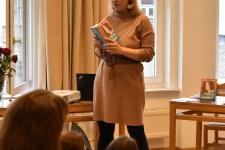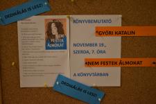2025. november 19-én ünnepélyes és szívünknek különösen kedves esemény helyszíne lehetett a könyvtár: Győri Katalin, iskolánk angoltanára mutatta be a fiatal olvasóközönségnek Nem festek álmokat c. új ifjúsági regényét. Beszélgetőtársa Győri Anna, a Trend Kiadó főszerkesztője volt.