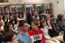 „Az tetszett, hogy a szerző elmondta, hogy kiről mintázta a fiú karaktereket. Ez bátor dolog, én sohasem mondanám el, ha író lennék. Nagyon tetszett a légkör, hogy „beszélgetős” esemény volt. És tetszik az ajándék könyvjelző is!” (Vörös Bori, 7. b.)