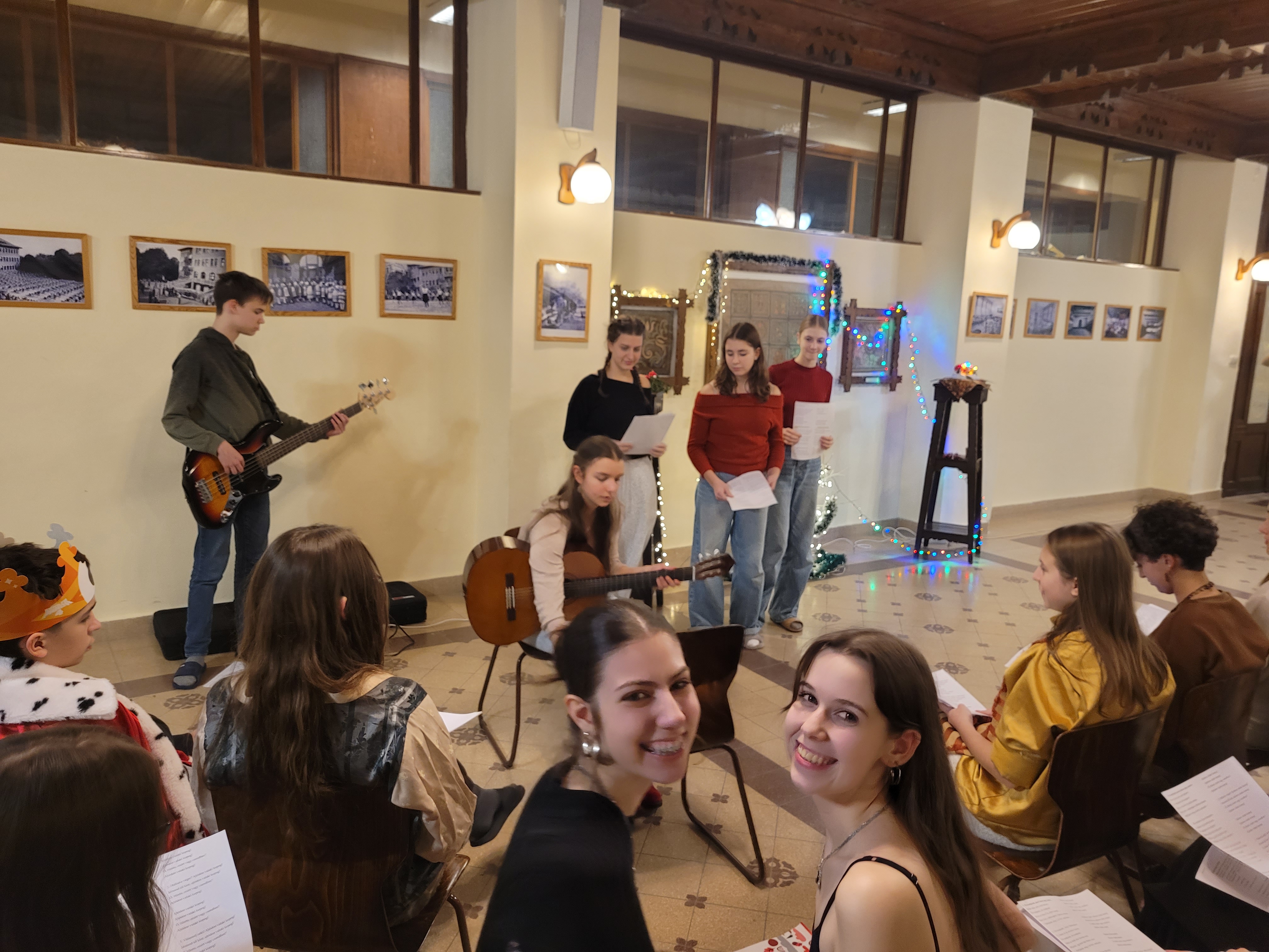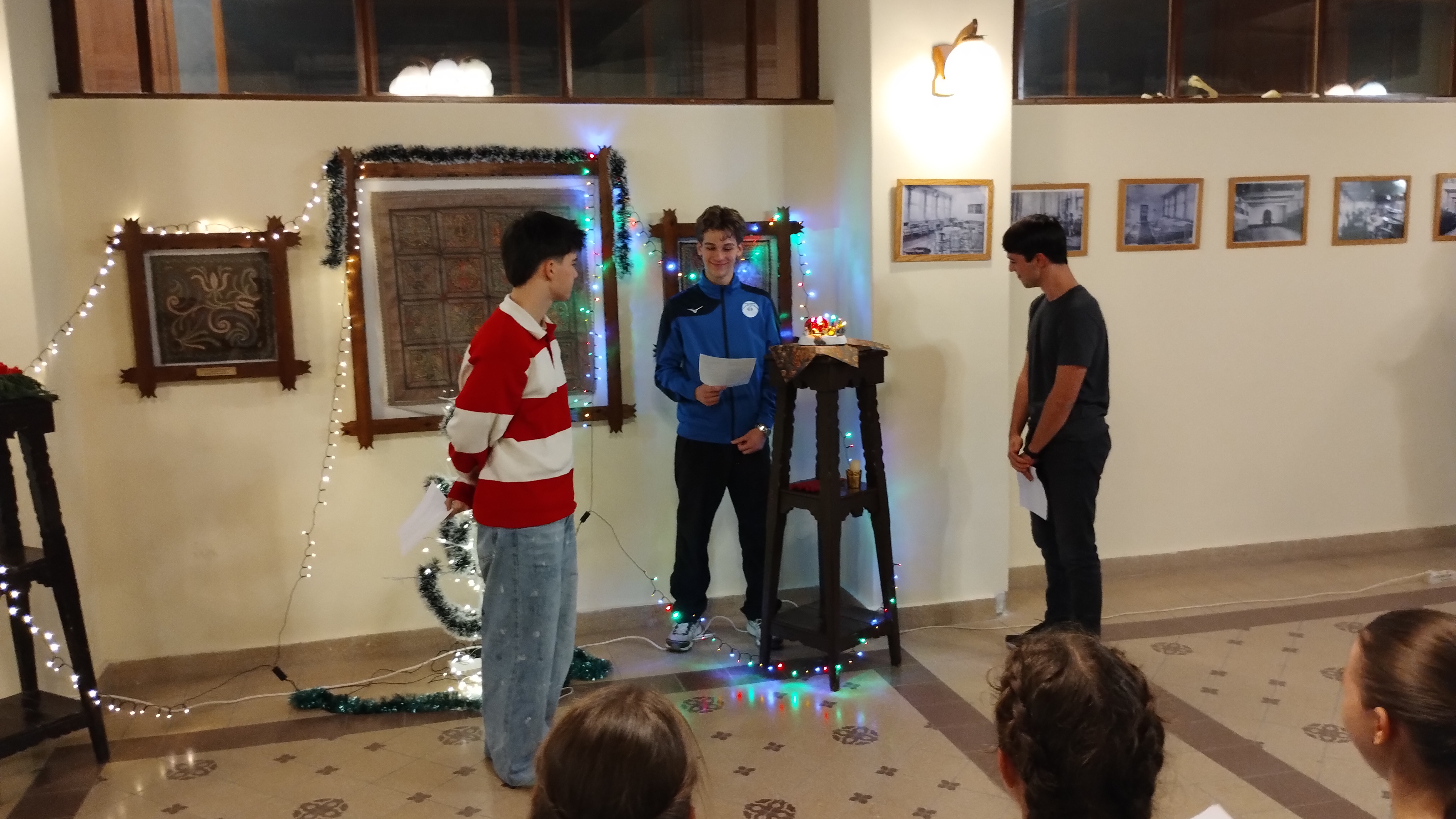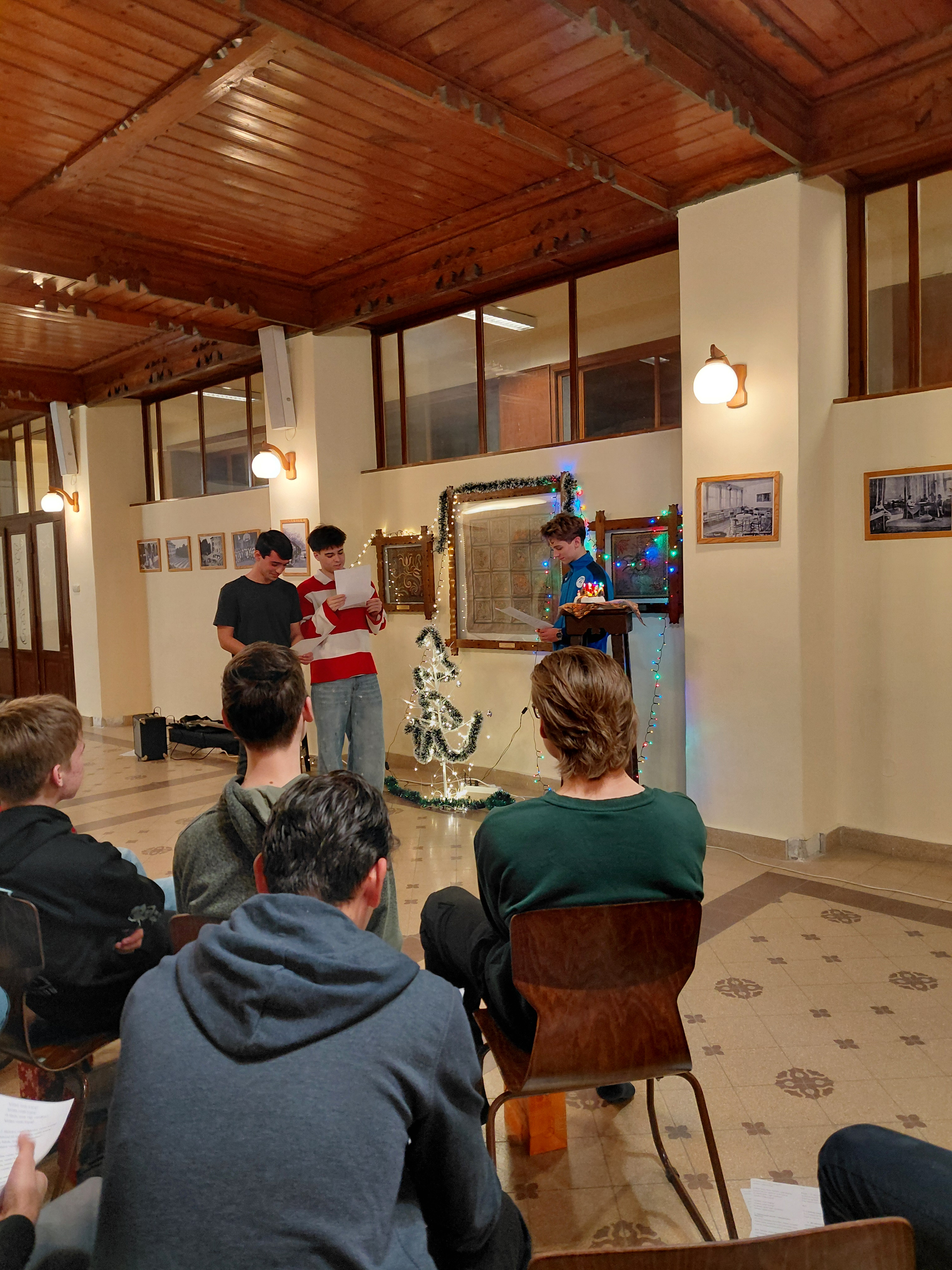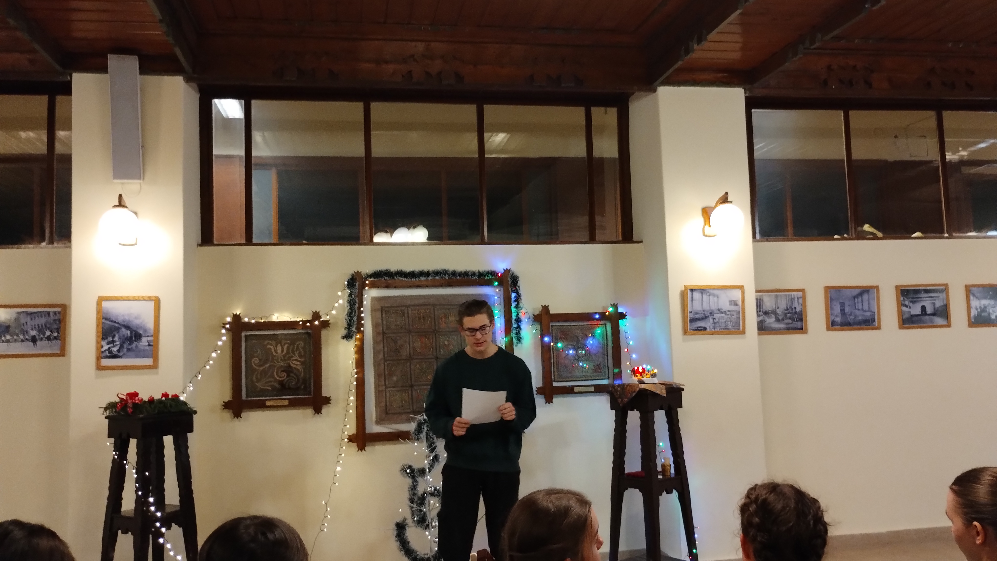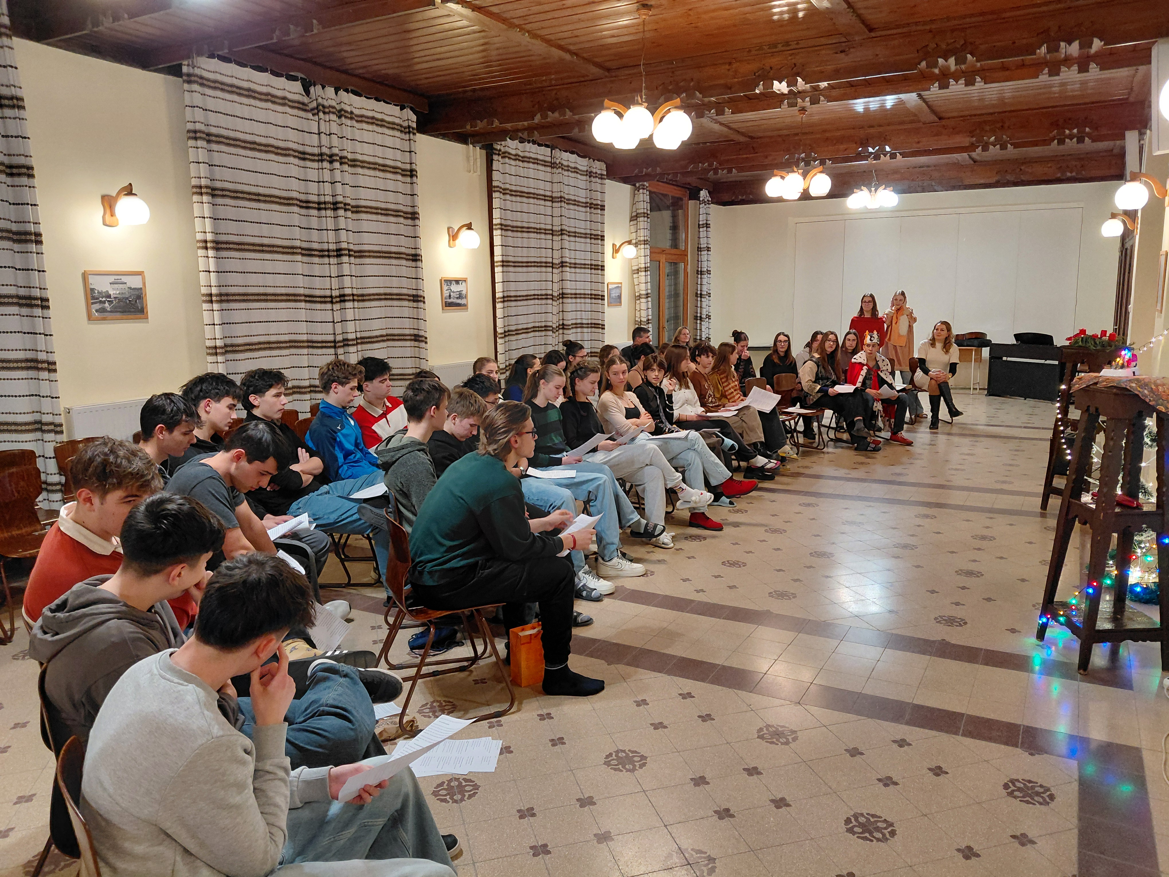 A díszterem meghitt karácsonyi hangulatot teremtett december 17-én, fenyőfa, gyertyák és díszek kíséretében. Az ünnepségen a kollégium diákjai és tanárai vettek részt, együtt készülve karácsonyra. Az ünnepséget énekkel kezdtük, amit a dicsőítő együttes gitárral kísért. A diákok aktívan részt vettek a kollégiumi karácsonyban, többen szerepekkel, versekkel tettek bizonyságot Jézus Krisztusról, a Megváltóról. A közös éneklés és ima különösen megható hangulatot teremtett