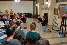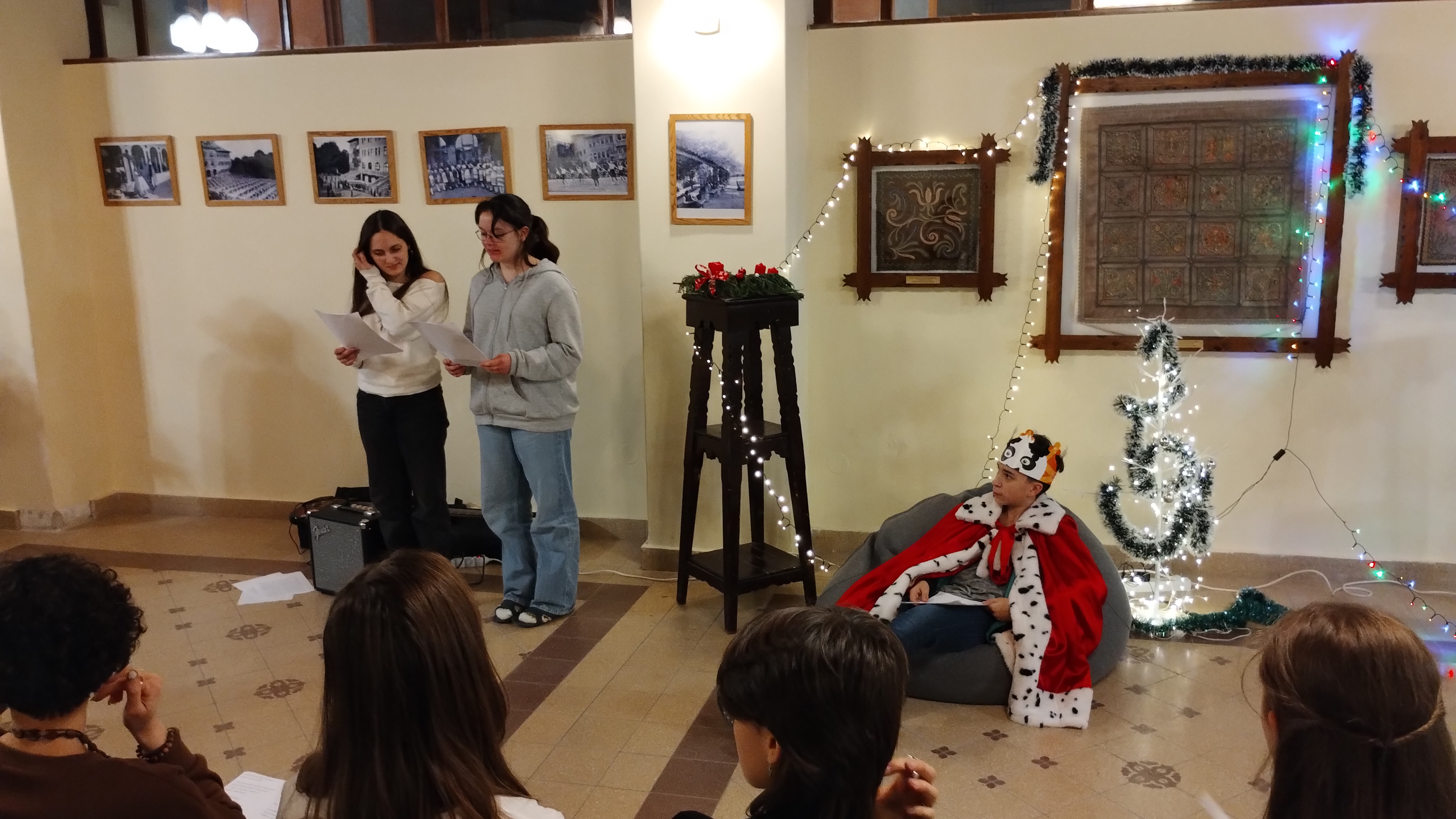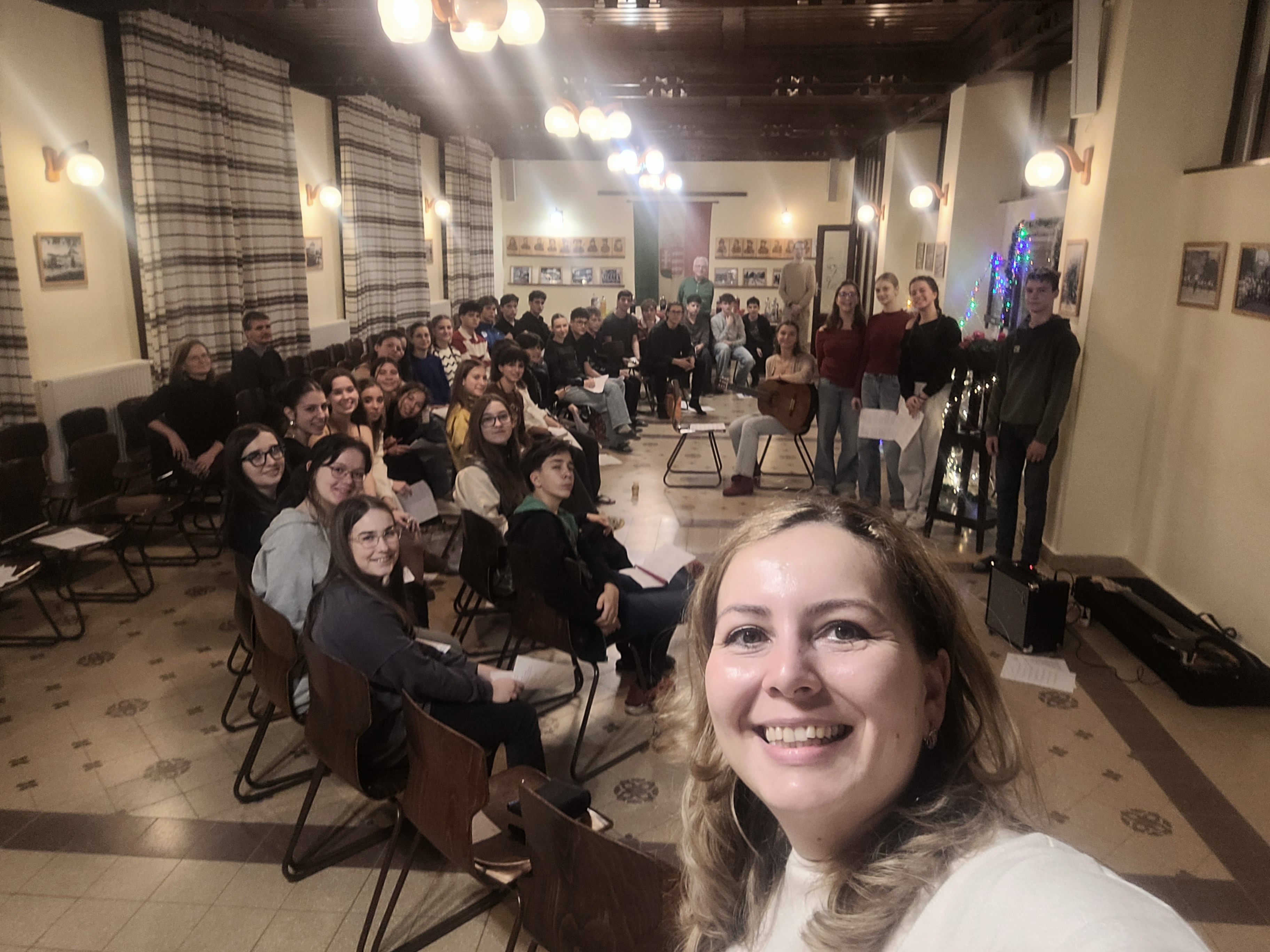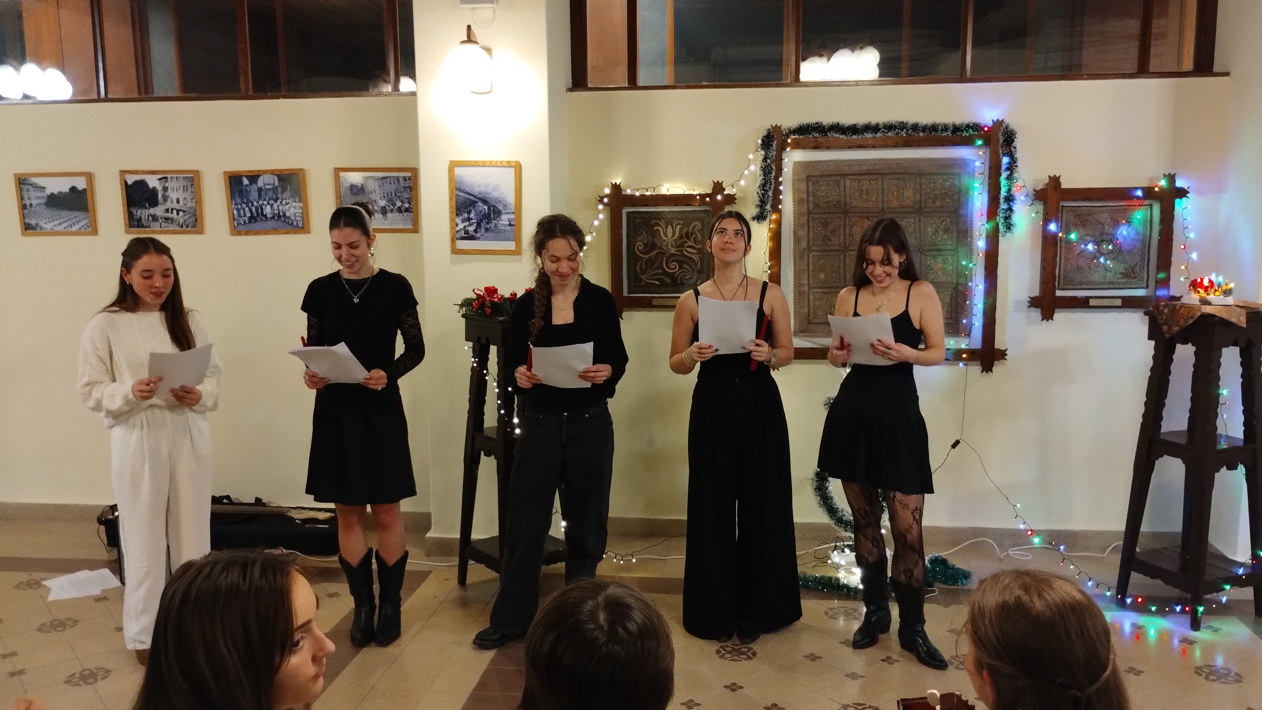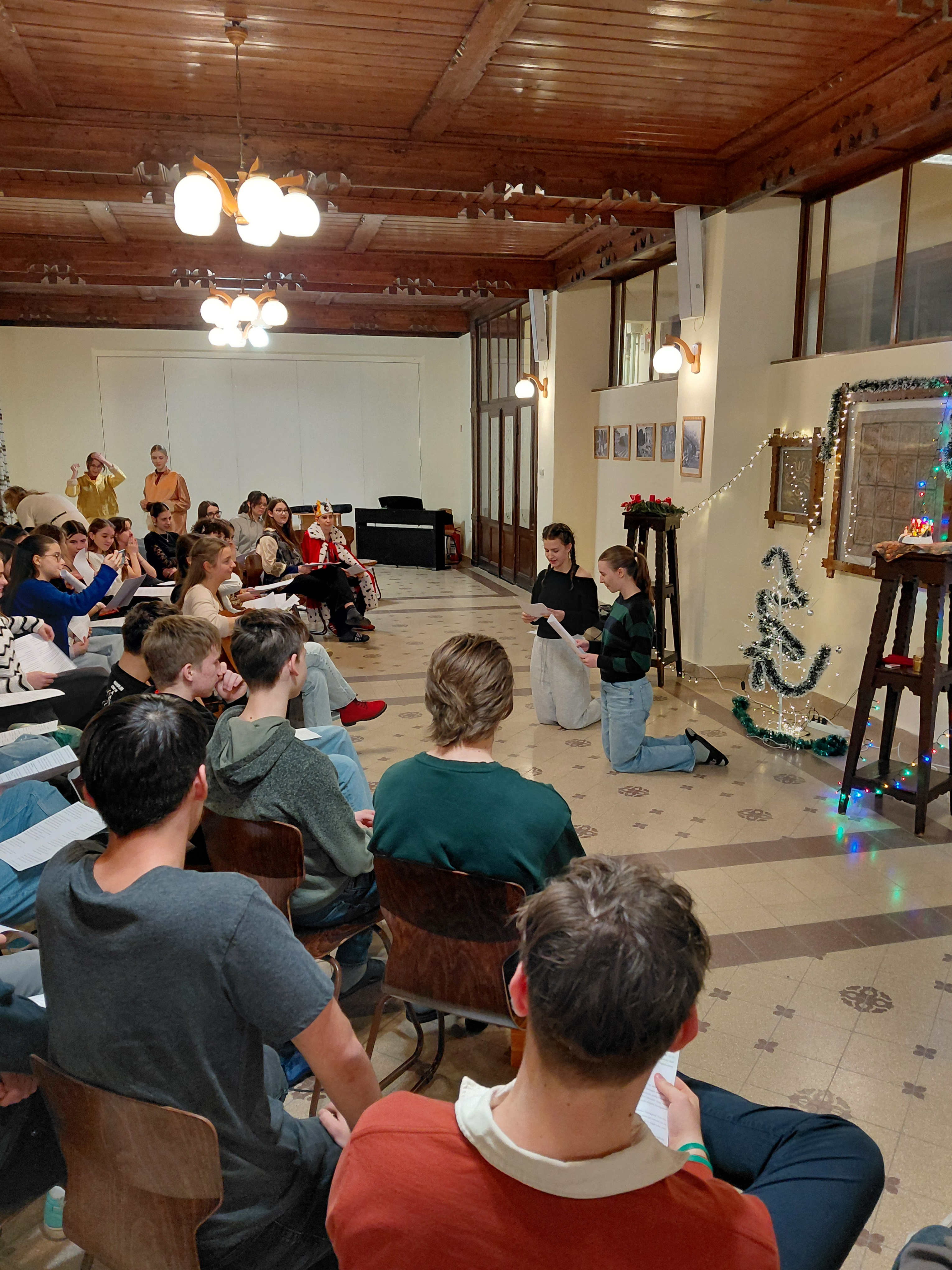 A díszterem meghitt karácsonyi hangulatot teremtett december 17-én, fenyőfa, gyertyák és díszek kíséretében. Az ünnepségen a kollégium diákjai és tanárai vettek részt, együtt készülve karácsonyra. Az ünnepséget énekkel kezdtük, amit a dicsőítő együttes gitárral kísért. A diákok aktívan részt vettek a kollégiumi karácsonyban, többen szerepekkel, versekkel tettek bizonyságot Jézus Krisztusról, a Megváltóról. A közös éneklés és ima különösen megható hangulatot teremtett