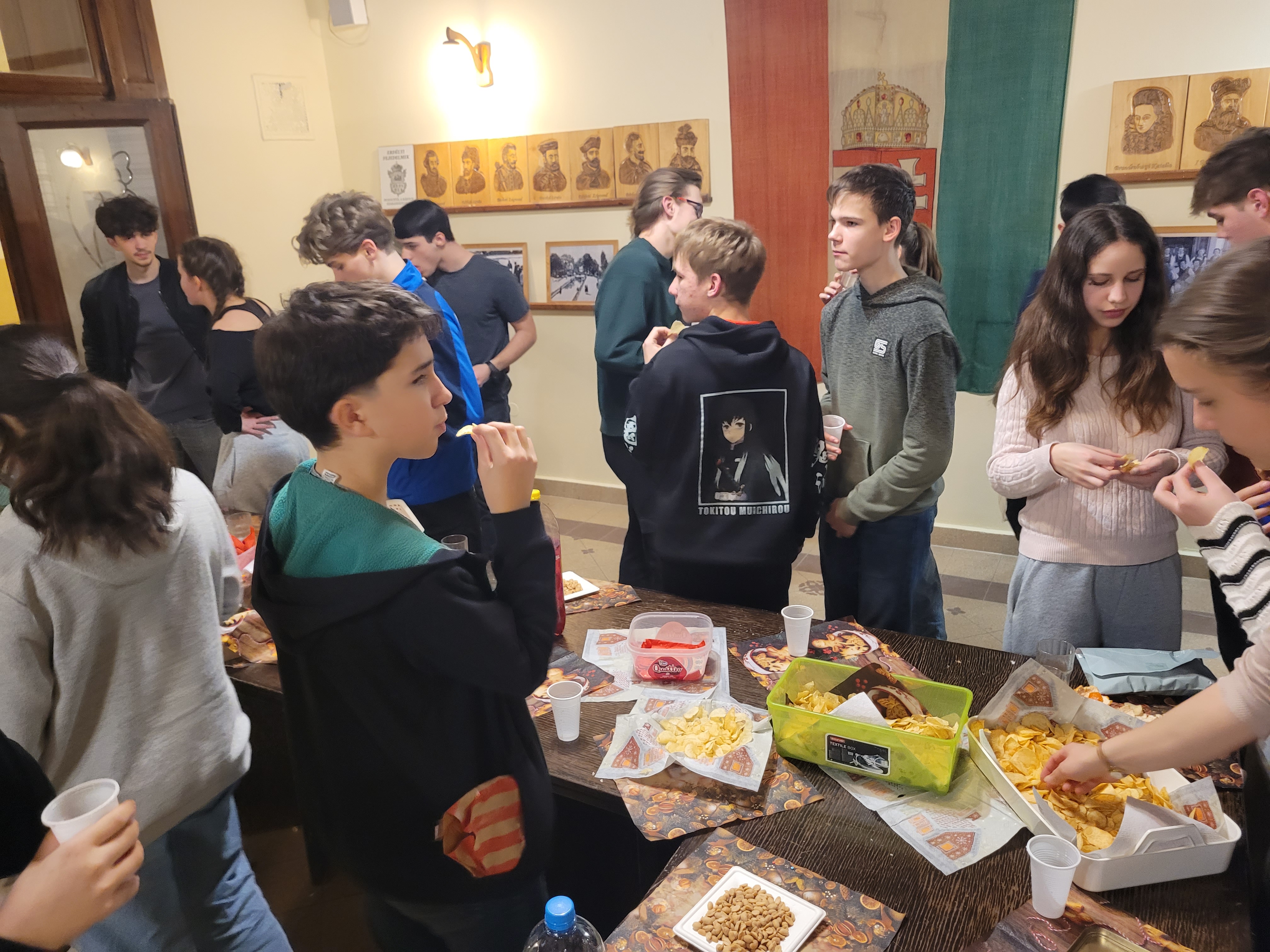 Ezután következett az ajándékok átadása a „kihúzottjainknak”. A sütemények, gyümölcsök és üdítő elfogyasztását követően mindenki vidáman tért vissza szobájába. A kollégiumi karácsony idén is családias hangulatú ünnepség volt.