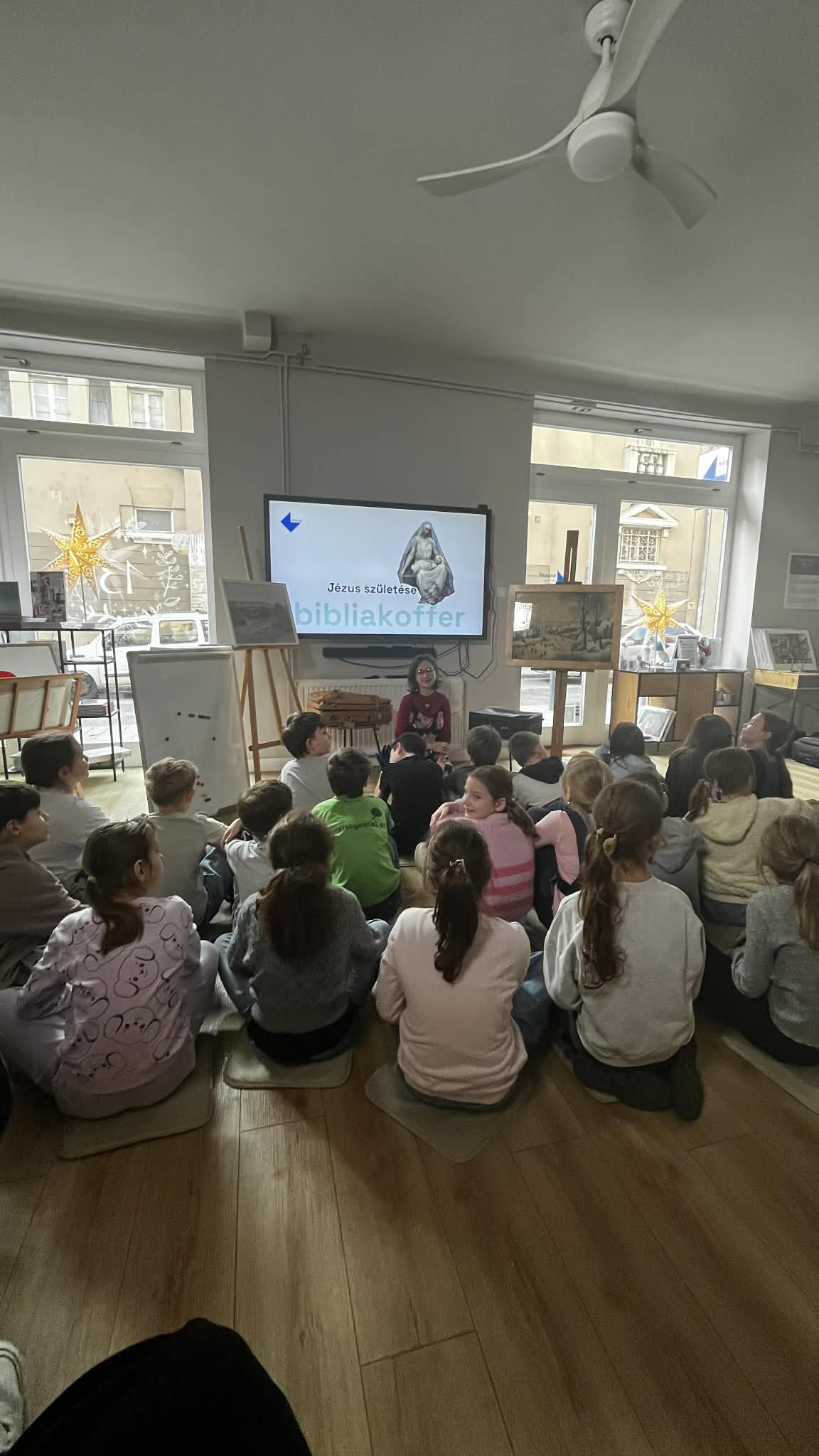 Így lehetett jelen december 9-én délelőtt a negyedik osztály a Bibliakoffer – Jézus születése című bemutatón, melyen a gyerekek a témával kapcsolatos ismereteiket festőművészeti információkkal és érdekességekkel is gazdagíthatták. A foglalkozás interaktív és játékos jellege miatt az idő szinte észrevétlenül repült. Az adventi időszakban ez az élmény is segített ráhangolódni a várva várt ünnepre, Jézus születésére.