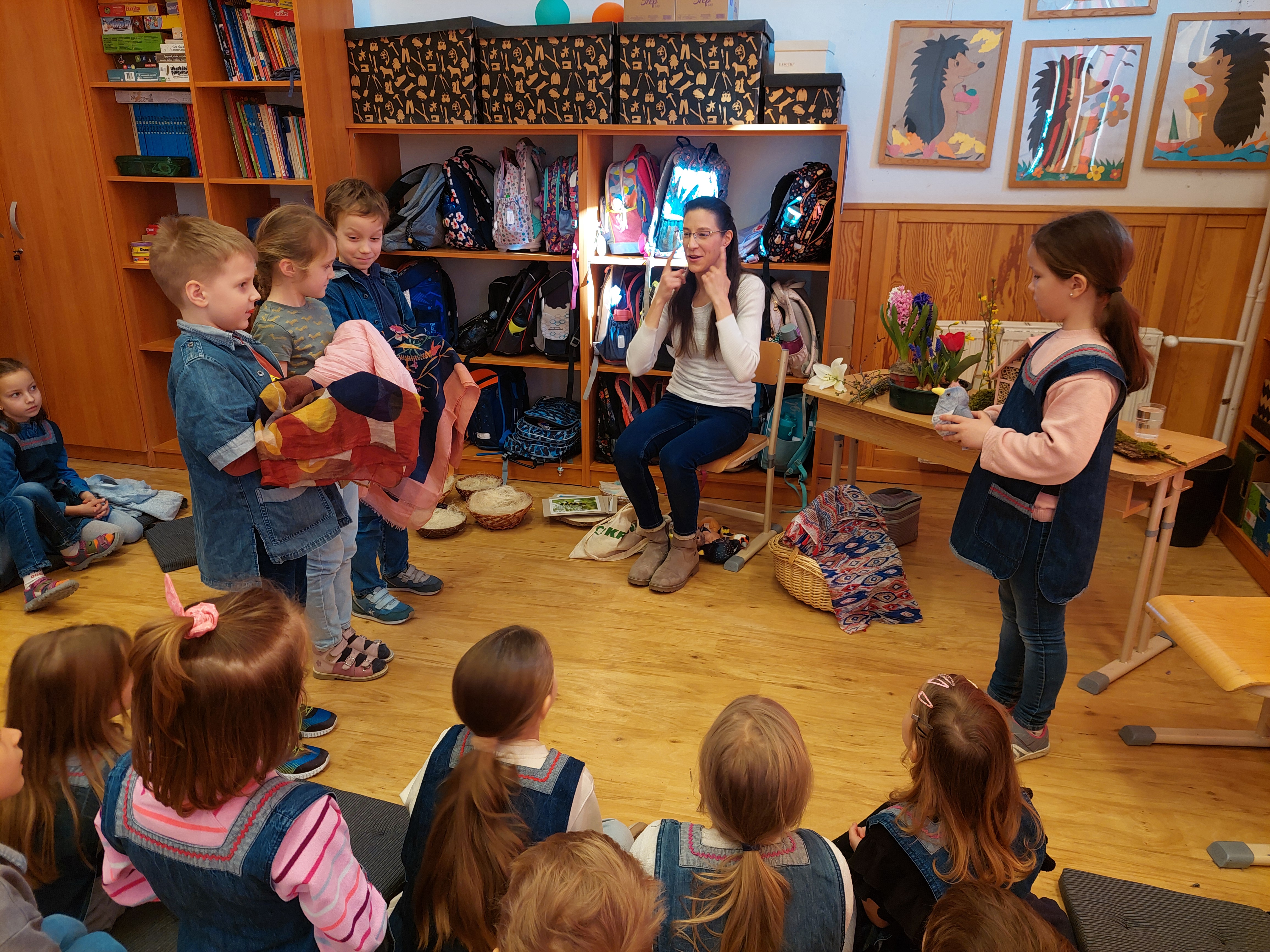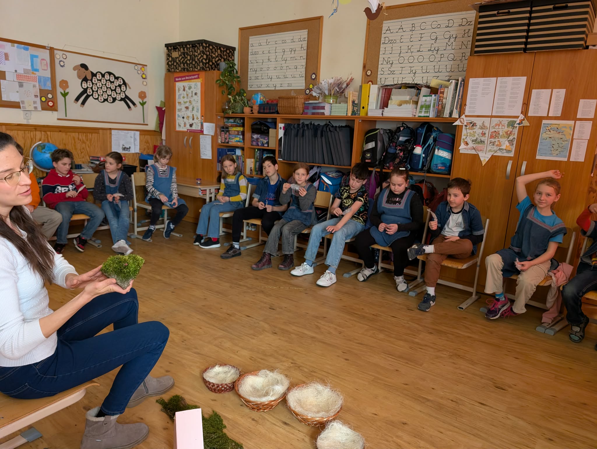 Az elsős, másodikos és harmadikos kisdiákok testközelből részesei lehettek a tavaszi erdő ébredésének egy interaktív természetismereti előadás formájában. Megvizsgálták egy fa évgyűrűit, rügyező és virágzó ágakat, melyik rügyből mi fejlődik. Ismerkedtek a lombfakadás előtti virágzással, gyönyörködtek a hagymás virágokban, megtudva róluk sok érdekességet. Szó volt a különféle beporzásról és arról, hogy hogyan segíthetünk a rovaroknak, megismertük a rovarhotel titkait. Kézbe foghatták a tavaszi erdő énekesmadarait, hallgathatták hangjukat és sok érdekességet tanulhattak róluk. Élvezettel játszottak párkeresős madárdal- fülelős játékot. Simogattak mohát és tollpihét. A foglalkozást iskolánk volt diákja, Pálóczy Júlia kertészmérnök tartotta.