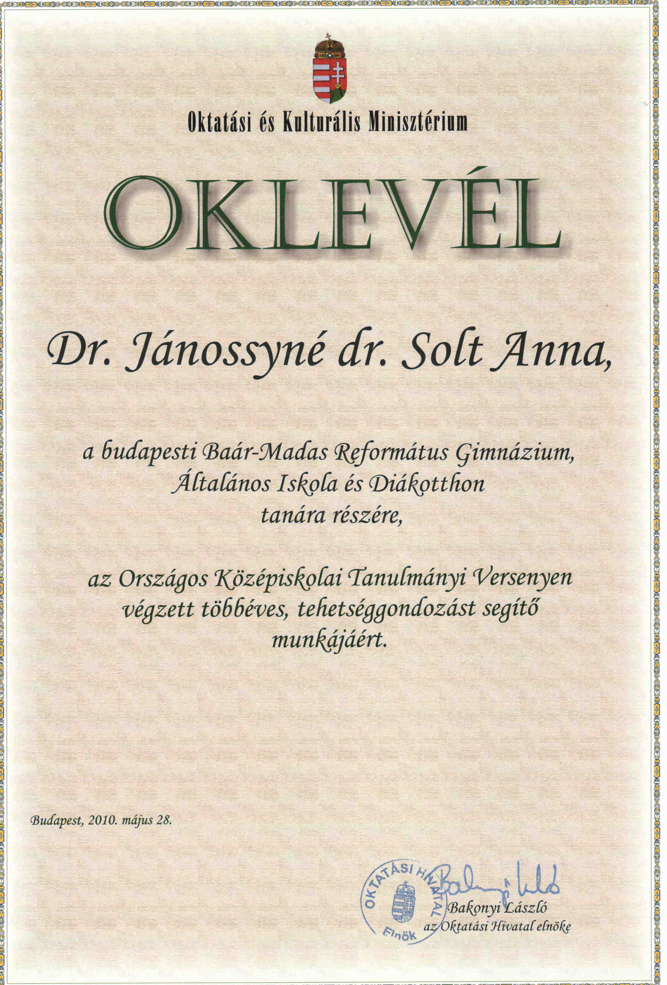 2009/10 Oktv-díjkiosztó – tanáraink kitüntetése