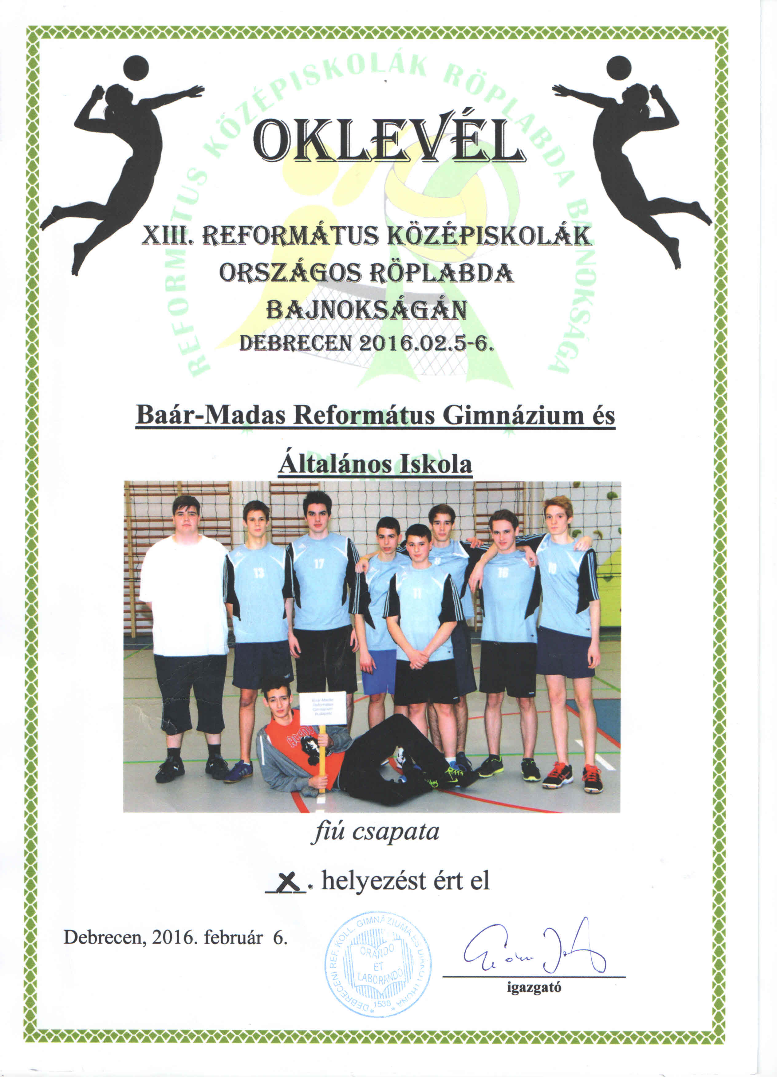 Február 5-én pénteken hajnali fél nyolckor indult a Lónyay, a Sylvester és a Baár-Madas leány és fiú csapata egy közösen bérelt busszal Debrecenbe a református középiskolák immár 15. alkalommal megrendezésre került röplabda bajnokságára. A jó hangulatú utazást még jobb hangulatú mérkőzések követték és bár a végső „elszámolásban” nem szóltunk bele a dobogóért folytatott küzdelmekbe, de a realitásoknak, a felkészültségünknek megfelelően és a többi csapat játékerejét tekintve igazságos végeredmény született.