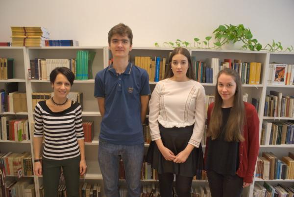 Marton Ágota tanárnő és a diákok: Skola Balázs, Suhai Hanna, Majoros Gabriella