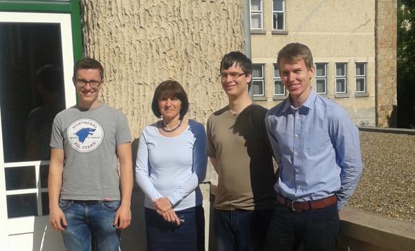 Pap Ildikó tanárnő és a diákok: Balogh Menyhért, Asztalos Bogdán, Forrai Botond