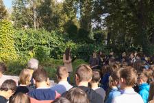 Múltunk megismerése, értékeink felmutatása kötelessége közösségünknek. Ennek szellemében az iskola alapítóiról minden évben megemlékezünk. Hagyományosan a gimnáziumi éveiket kezdő osztályok osztályfőnökeikkel látogatnak el a Fiumei úti Nemzeti Sírkertbe Baár János és Madas Károly síremlékéhez. Október 10-én a 7.b, a 9.c és a 9.d tanulói kaptak vázlatos képet az intézmény névadóinak életéről. Meghallgatták az iskola egykori igazgatójának, a kiváló költőnek, Áprily Lajosnak Aranykapu című versét. A 90. és a 25. zsoltár közös eléneklése után a sírokon virágokat helyeztek el a diákok és a pedagógusok, tisztelettel gondolva a nagylelkű adakozókra.