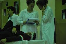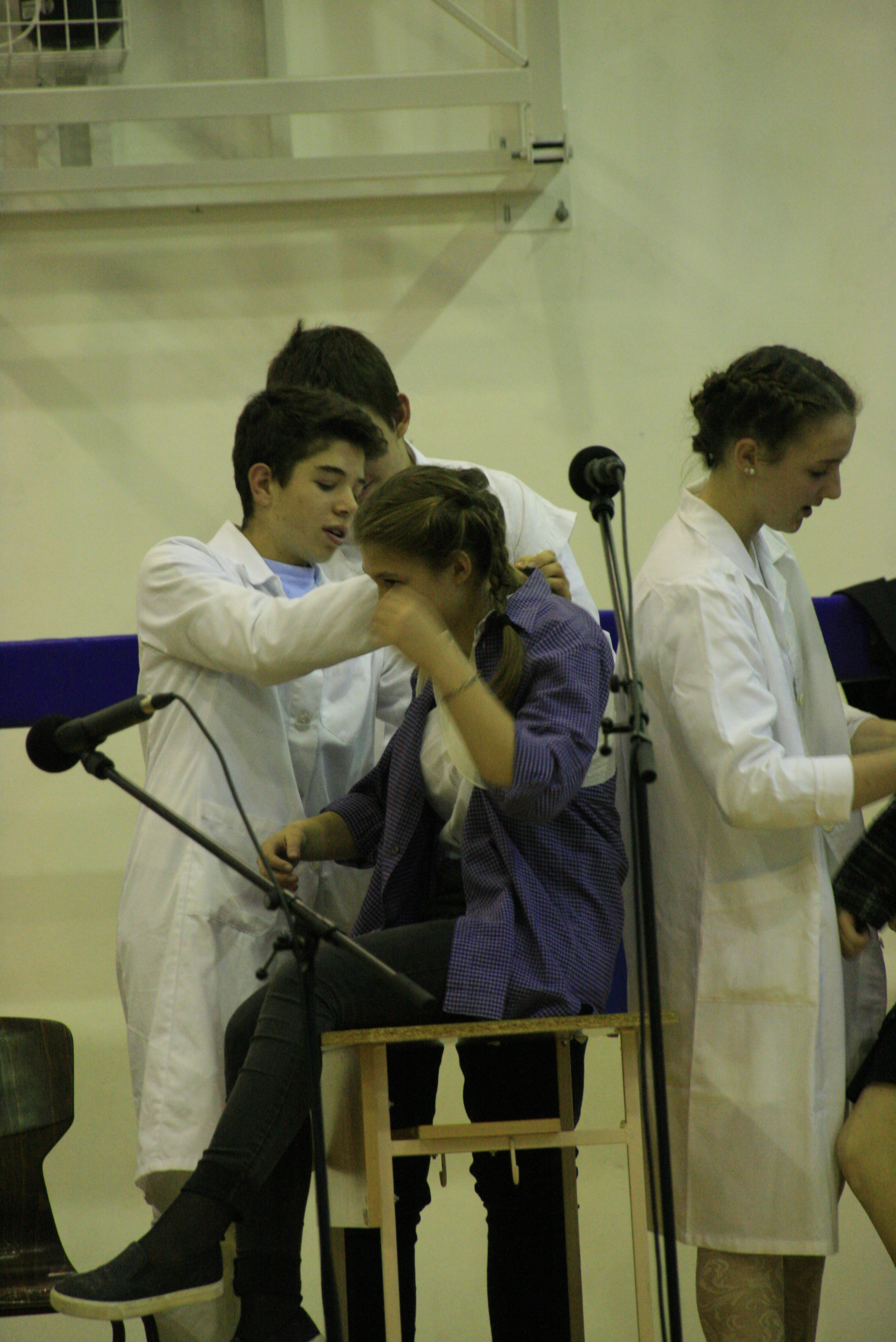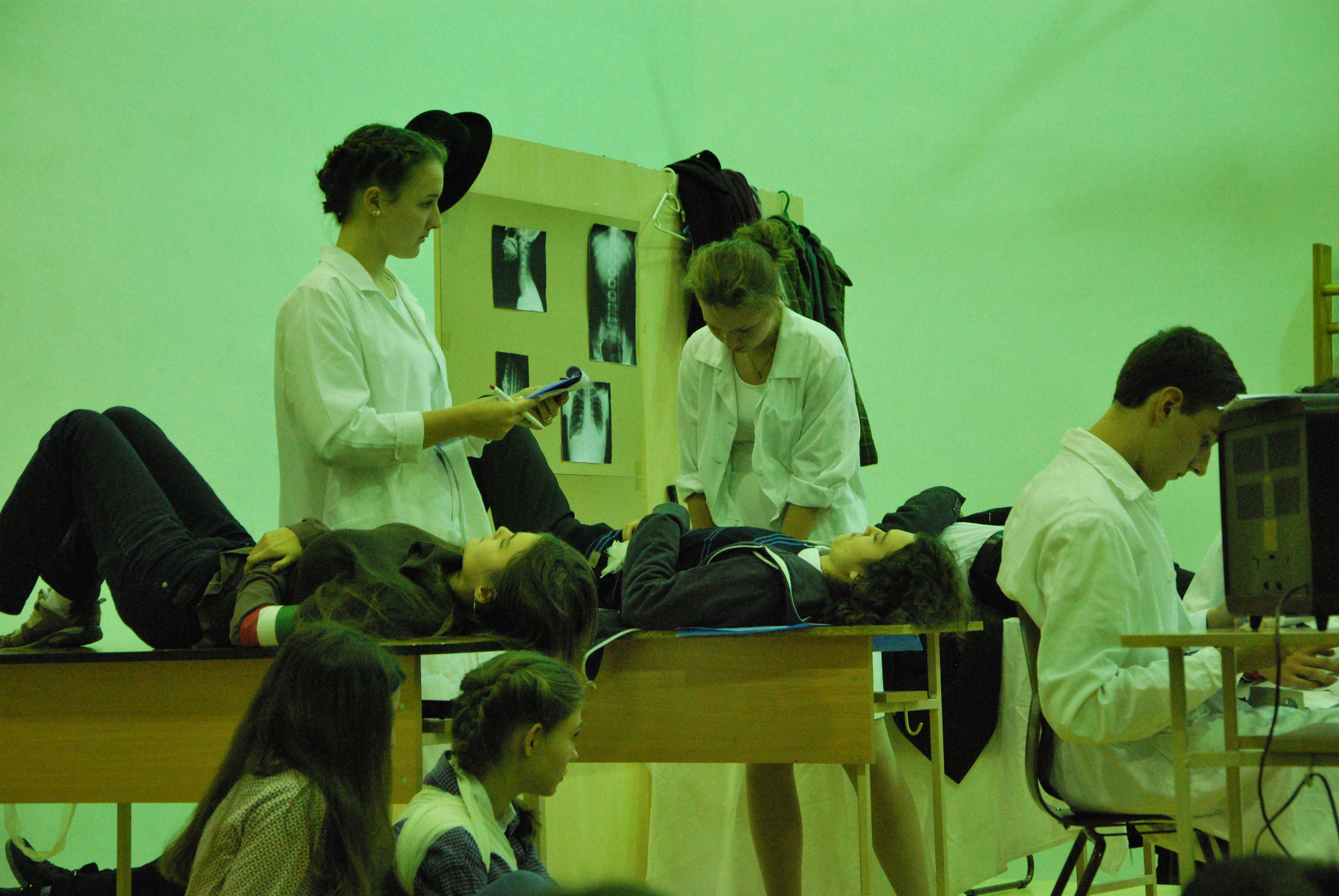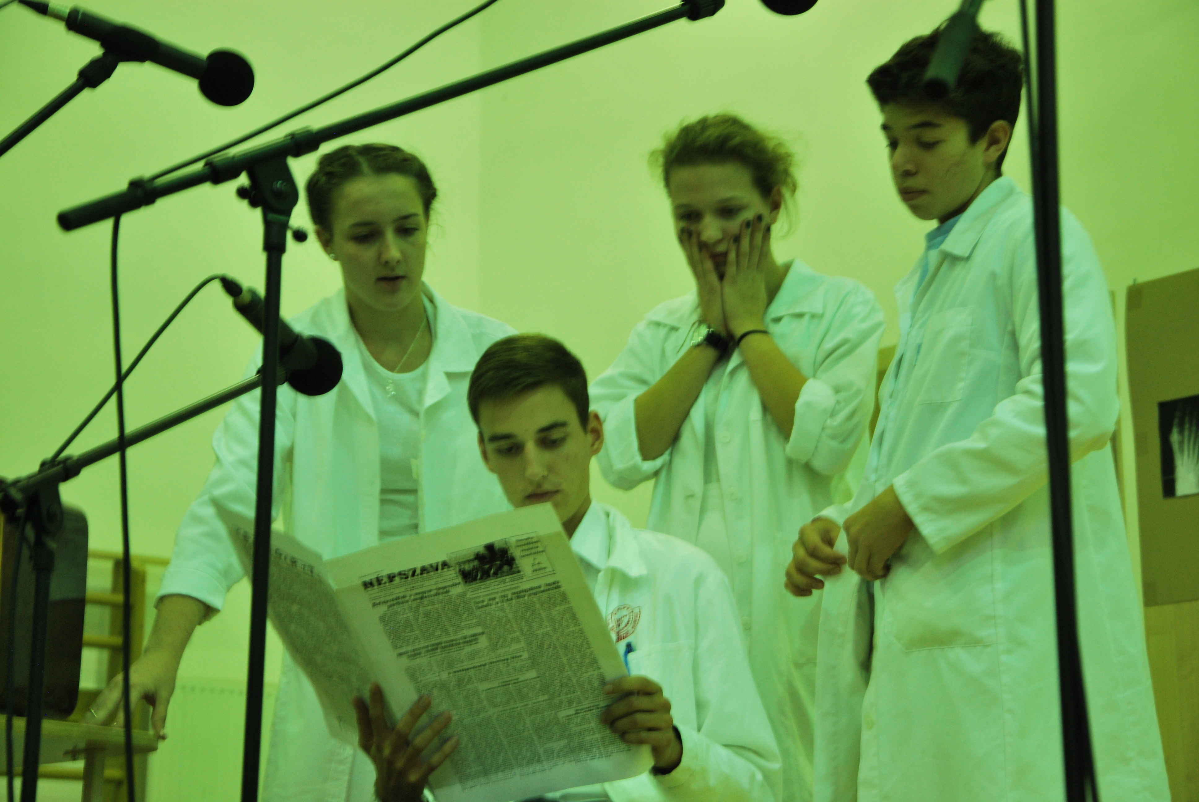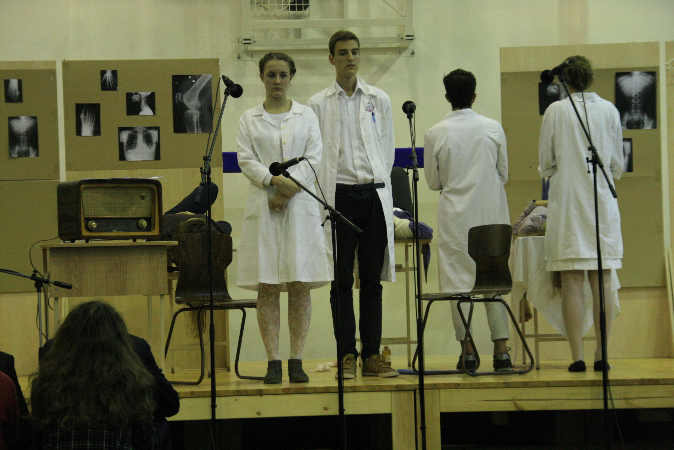 A doktor úr emlékein alapuló színdarab végigkövette a kórház életét a forradalom napjai alatt, a belső monológok pedig a szereplőknek önmagukra és az eseményekre adott reflexióit, kérdéseit tartalmazták. Ezeket a szövegeket a 11.b osztály nyelvi-kommunikáció tagozatos diákjai írták a szereplőkben lezajló konfliktusokról.