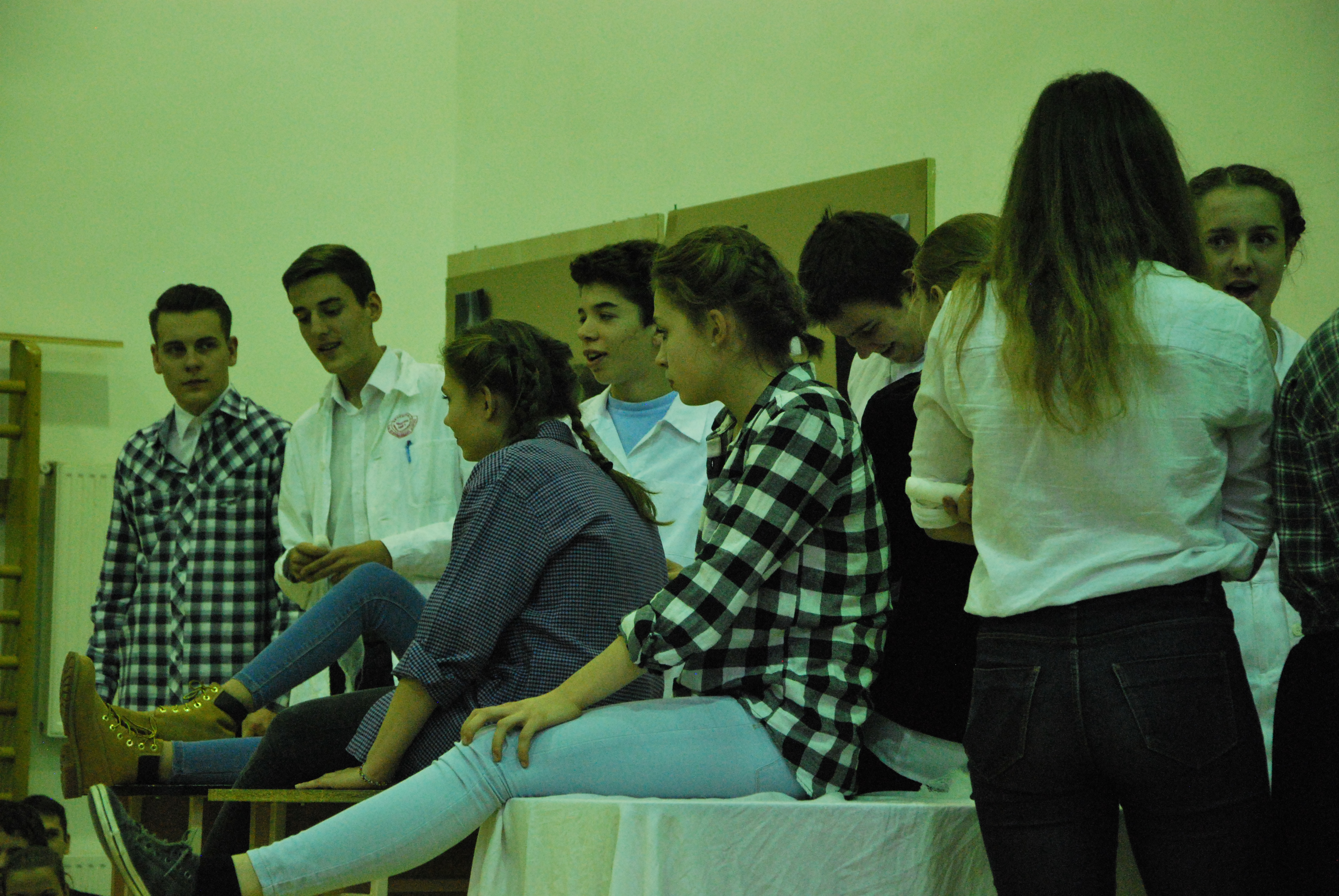 Köszönet az előadás szereplőinek: Móczár Luca, Soós Panna, Jámbor Zsombor, Jármy Tibor, Kovács Fanni, Timár Péter, Sarf Zsófia, Szőnyi Laura és Durst Tamás 11.b osztályos tanulóknak, a kisebb szerepeket vállaló 11.b-s és 10. d-s tanulóknak, Pongor Gábornak és a 9. d-nek, valamint Fehér Barbara 12. d osztályos tanulónak.