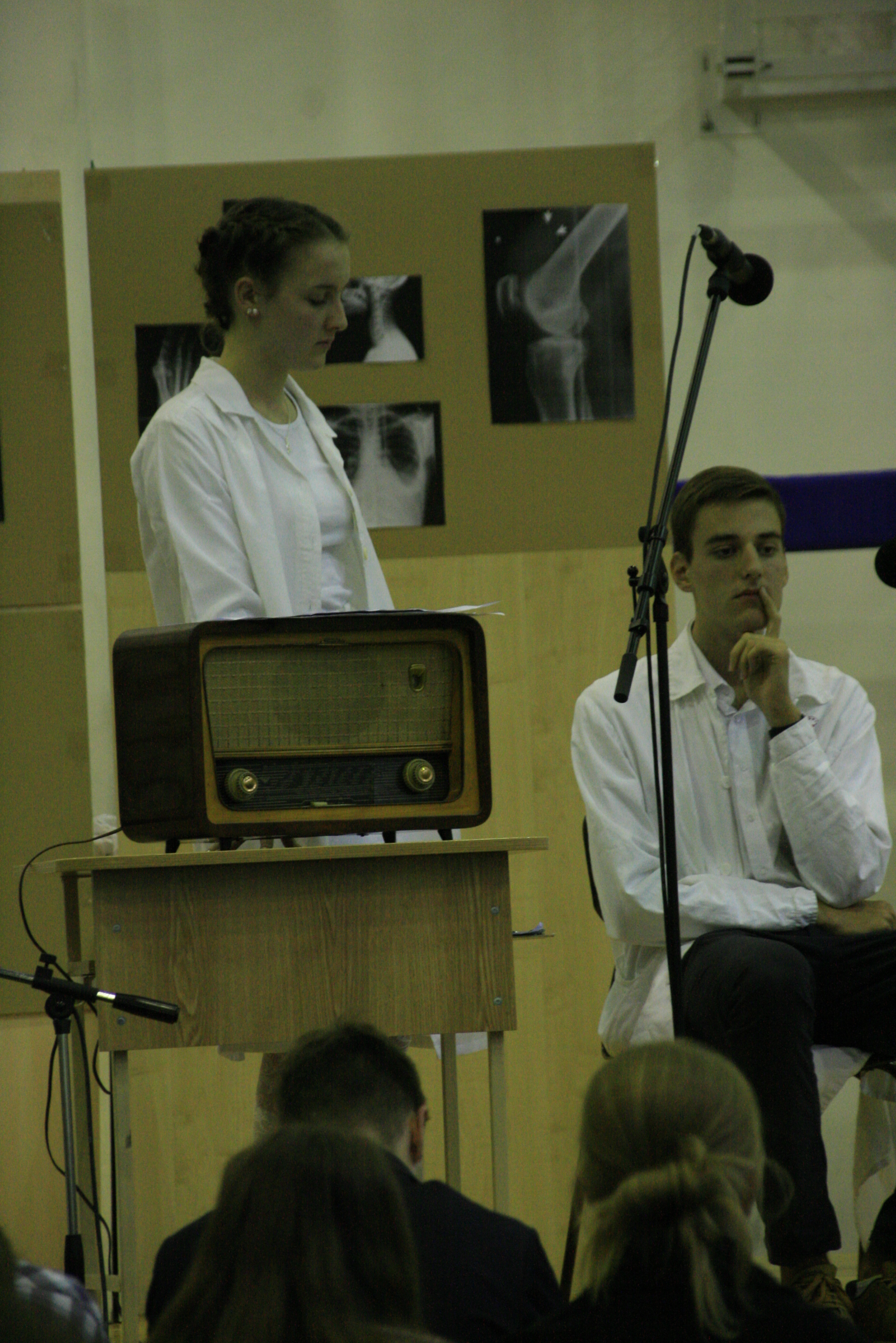 Iskolai ünnepélyünk az 1956-os forradalom orvosainak és nővéreinek állított emléket egy belső monológokkal tarkított színdarabbal, amely minden részletében valós történéseken alapult: Dr Szele György doktor úr visszaemlékezésein, aki a forradalom idején a Vas utcai kórház sebésze volt.