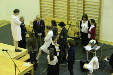 Az ünnepély zárása és összefoglalója Kárpáti Tibor kortárs költőnek a Misztrál együttes által megzenésített kortárs verse, a Gyöngyöt az embernek volt. A forradalom kórházi dolgozói az embert látták meg az előttük fekvő sebesültben, az ő ellátásukkal az embernek szórták a gyöngyöt. Nem számított, hogy a sebesülés előtt és a felépülés után milyen utat jártak és járnak be, a diákjaink által megformált orvosok és nővérek belül szabadok voltak az élet szolgálatába állni, bár a vágyott külső szabadságot csak átmenetileg kaphatták meg. Reméljük, hogy nem csupán megemlékeztünk erről a hozzáállásról, hanem egyben magunkévá is tudtuk tenni.
