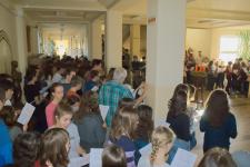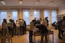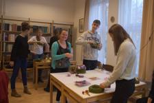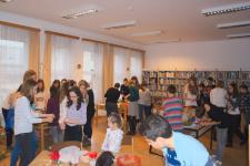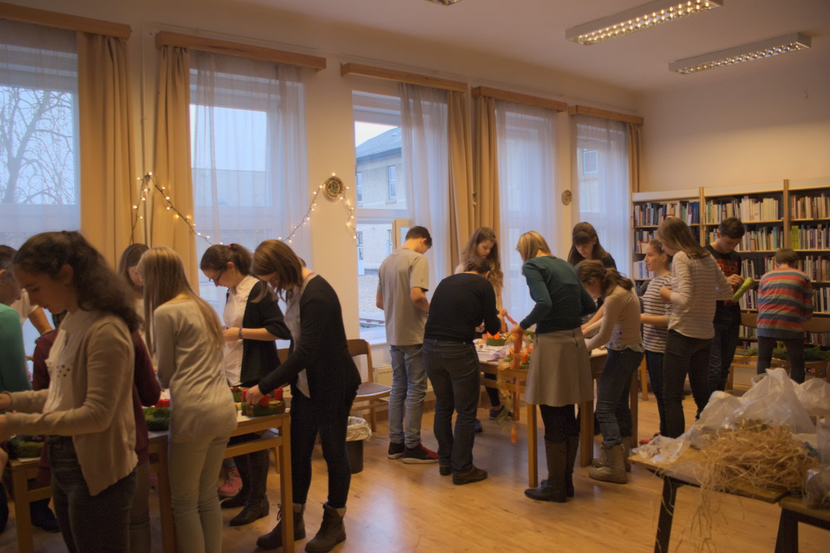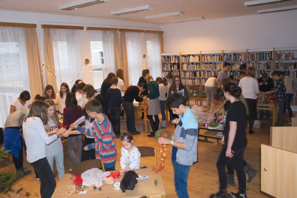 2016. november 25-én délután ismét vidám gimnazistákkal és érdeklődő tanárokkal népesült be a könyvtár. A hagyományosan sikeres rendezvényünket Győri Katalin tanárnő szervezte. A képek jól visszaadják azt a hangulatot, amely miatt még a végzős tanulók is szívesen jelen vannak. Az adventi illatok és dalok kellemes közegében alkotó tanulóinkat azok a diákok is megcsodálták, akik a jövő tanévben szeretnének az iskolába felvételizni.