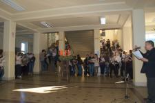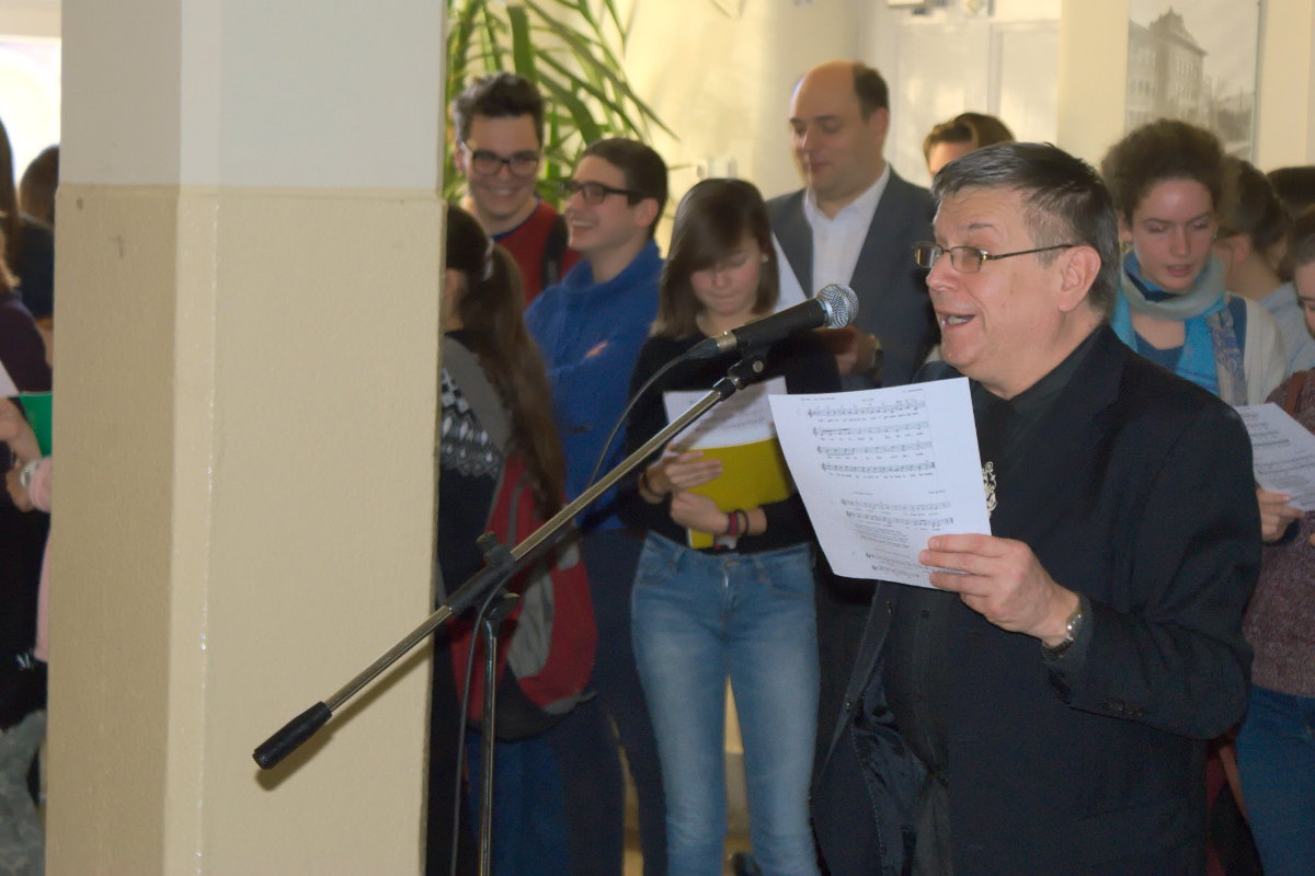 Az adventi forgatagban elkészült az iskolai „közös koszorú” is, mely idén narancssárga és barna színekbe öltözött. Hétfőn már boldogan állta körül az iskola apraja-nagyja és lelkesen énekelték a jólismert karácsonyi dalokat.