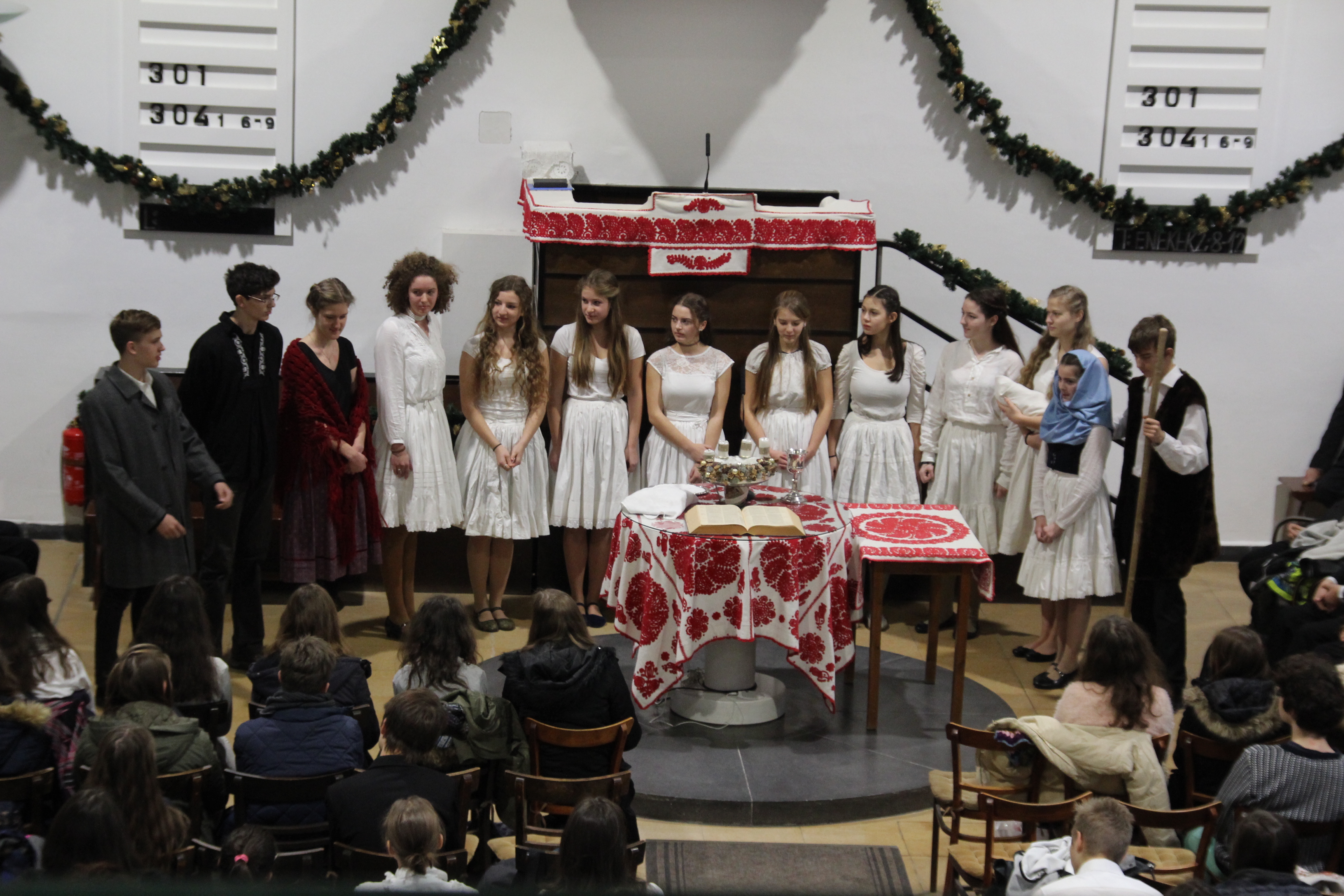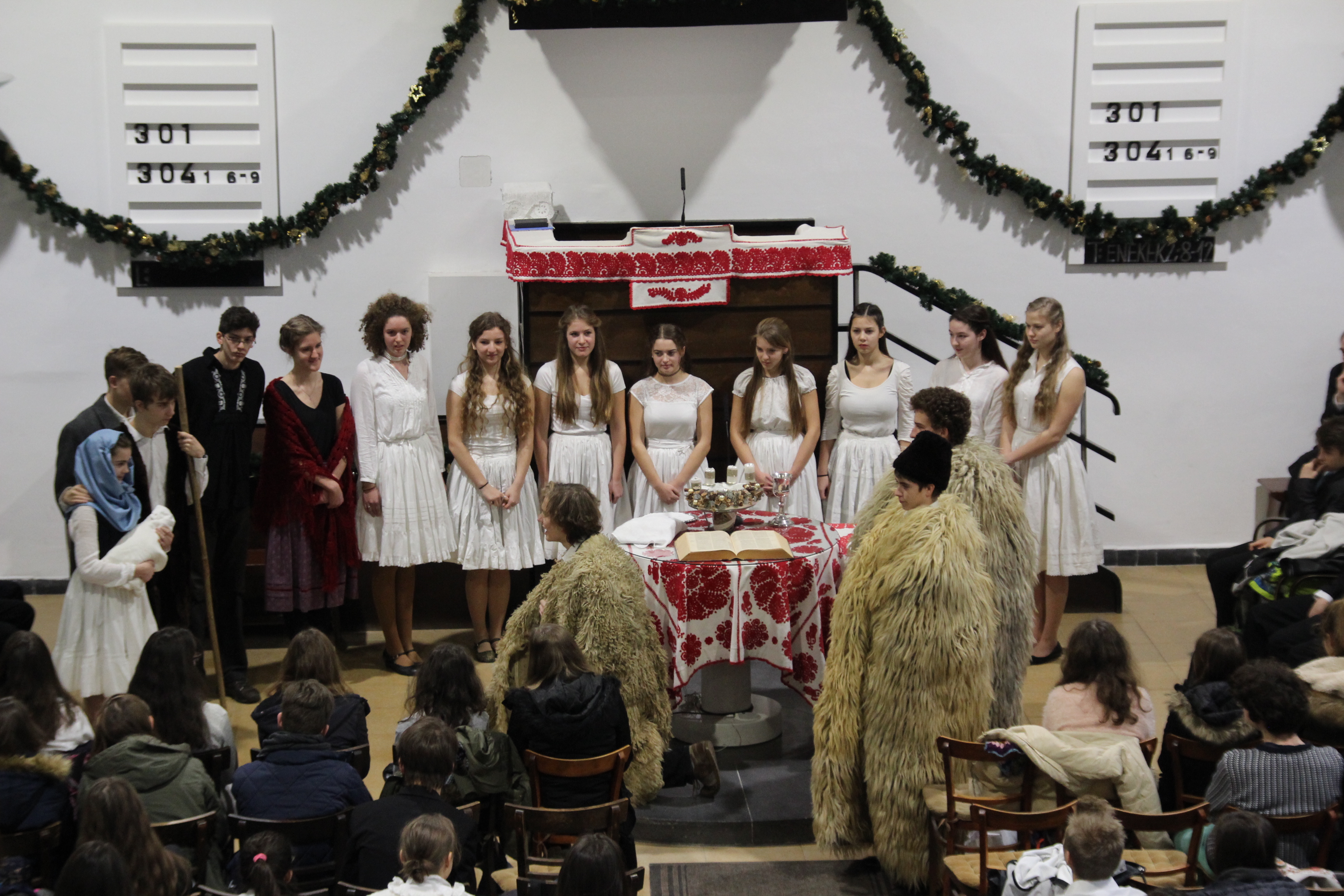 A karácsonyi műsorban a gimnázium hagyományörző együttese a KUCIFÁNTOS együttes búzai betlehemest adott elő.