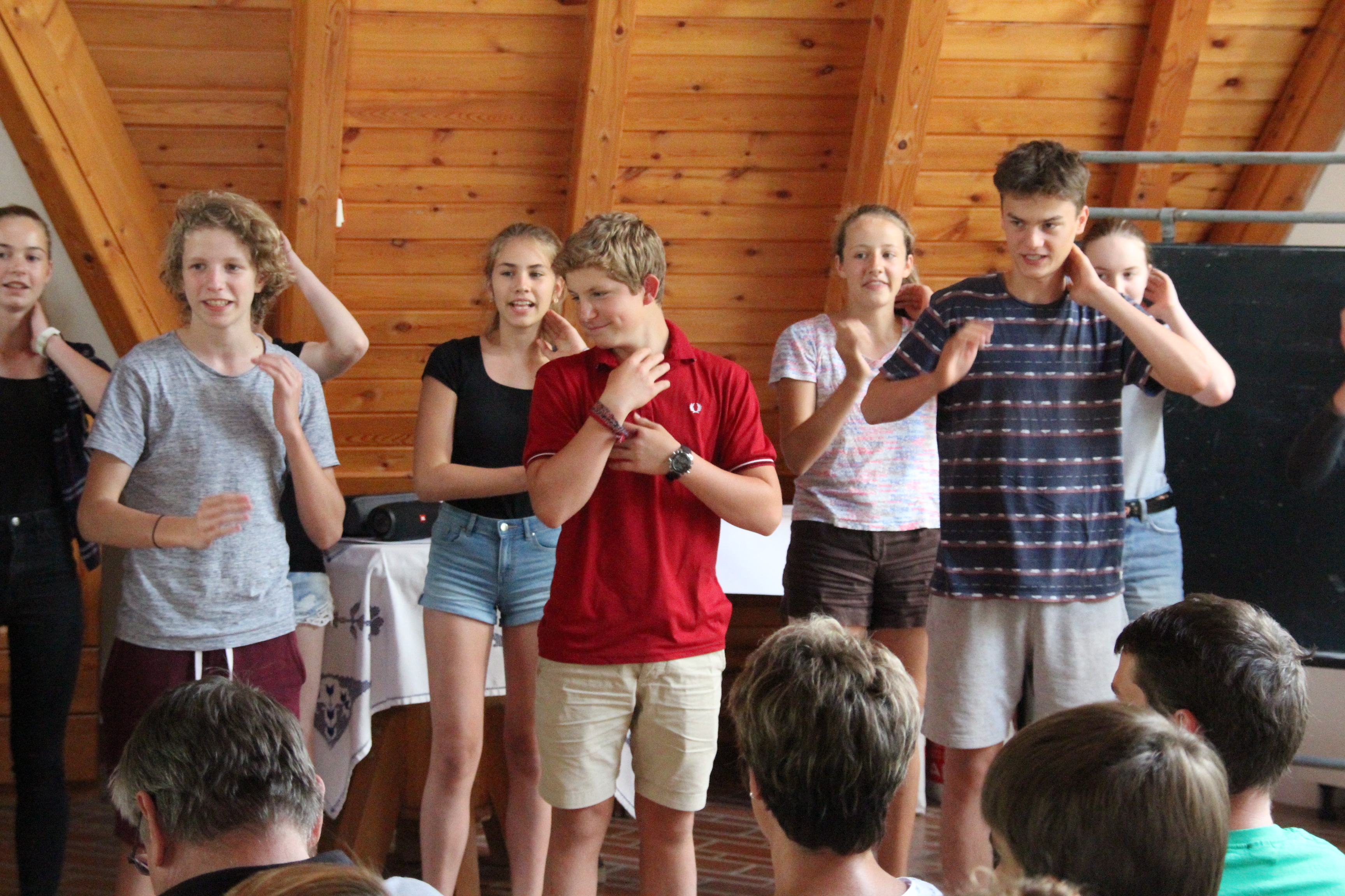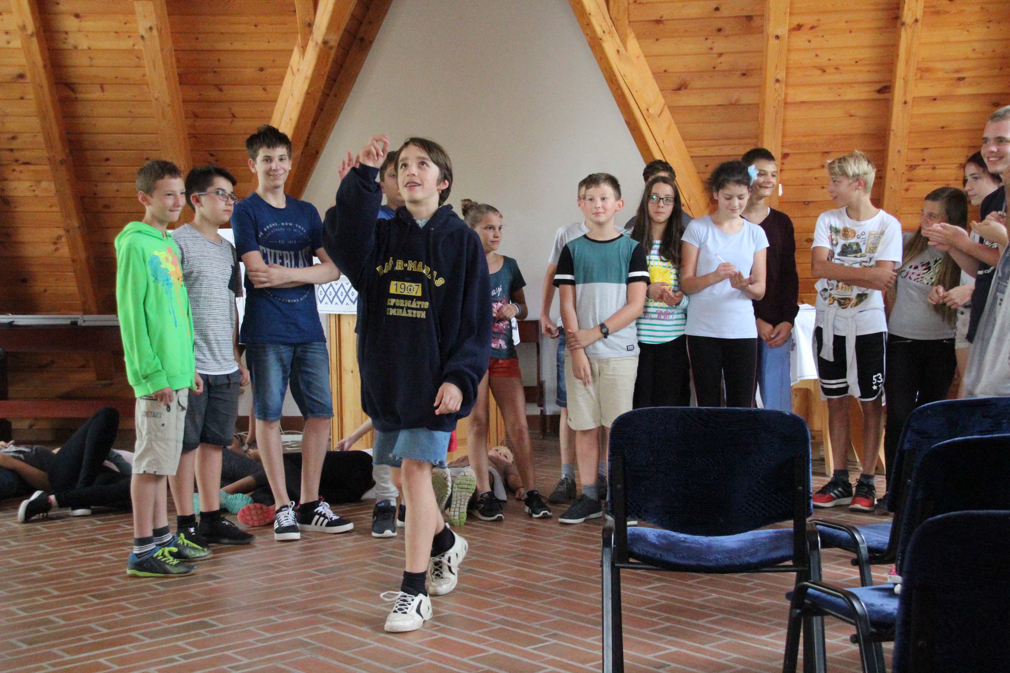 Az utolsó nap csúcspontját a gólyák előadásai jelentették. A 7. b osztály színdarabjában az ő szemszögükből visszanézhettük a tábor eseményeit, a sokkoló hatású ébresztőket és reggeli tornákat is belevéve. A 9. c és a 9. d saját dalszövegeket írt, és egy-egy zenés-táncos produkcióval szórakoztatta a közönséget.