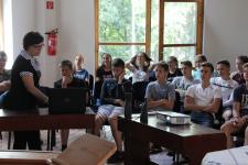 Szák-Kocsis Katalin tanárnő a módszeres tanulás trükkjeit, Tombor László igazgató úr pedig iskolánk történetét ismertette meg velük. Az esti áhítatokat Berkesi Gábor református lelkész vezette, ezeken az alkalmakon a három osztály együtt imádkozott és együtt énekelt.