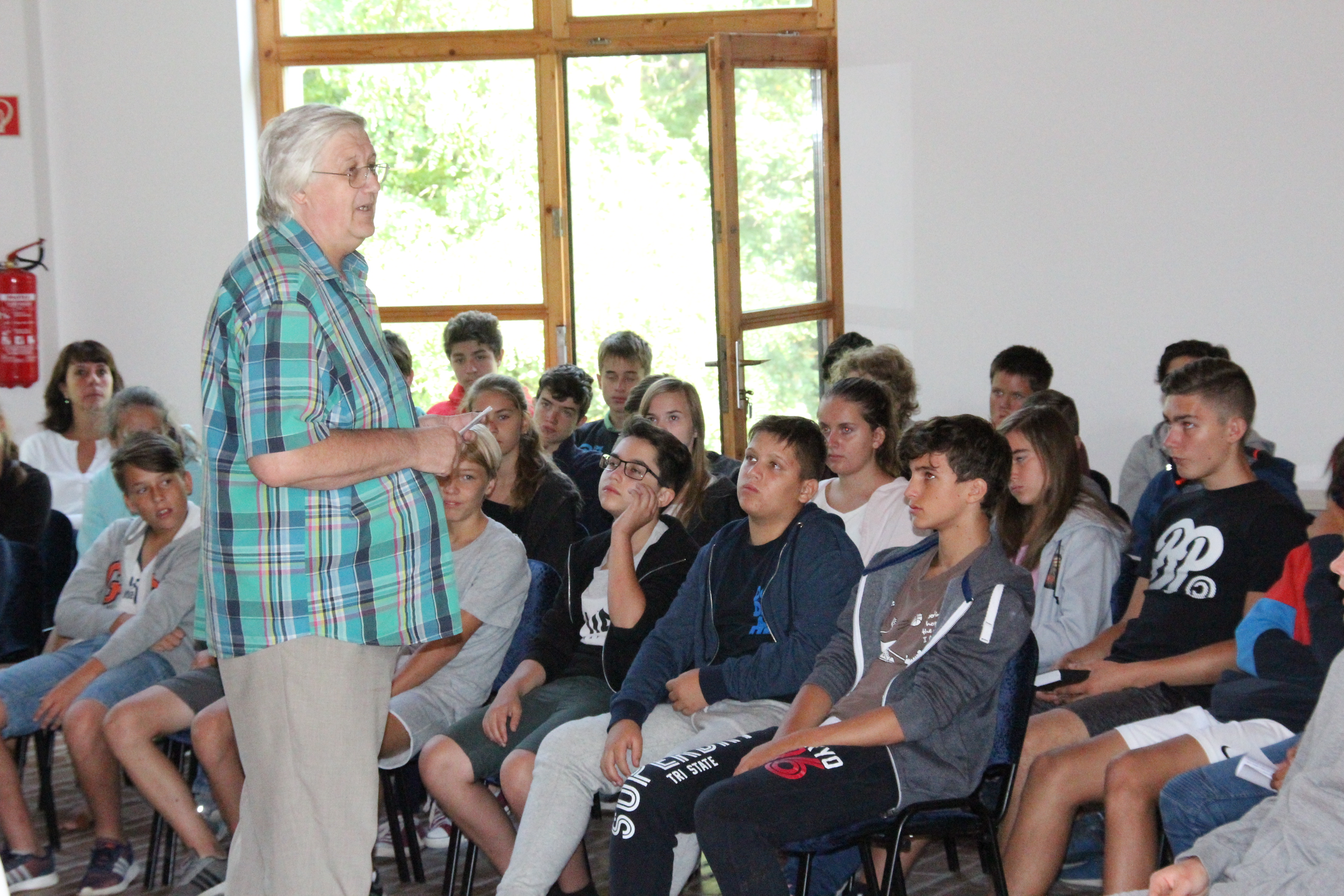 Szák-Kocsis Katalin tanárnő a módszeres tanulás trükkjeit, Tombor László igazgató úr pedig iskolánk történetét ismertette meg velük. Az esti áhítatokat Berkesi Gábor református lelkész vezette, ezeken az alkalmakon a három osztály együtt imádkozott és együtt énekelt.