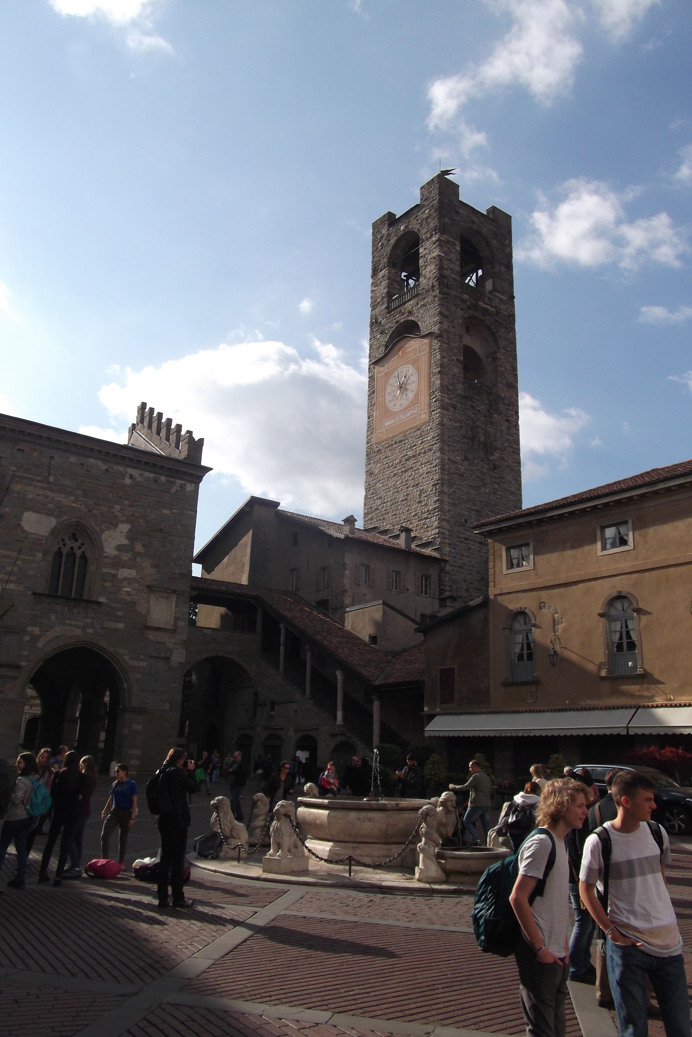 A második napon Bergamóban a Felsőváros szűk utcáin járva a középkori Itália egy-egy hangulatát kaphattuk el a több száz éves épületek közt. Ezt követően a hírességek által méltán kedvelt Comói-tónál tettünk látogatást, ahol igaz ugyan, hogy egy már őszi, kissé ködös, de gyönyörű naplementét láthattunk a Varenna feletti dombon álló Vezio-vár romjaiból, ahonnan az egész tóra ráláthattunk.