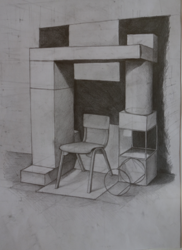 Galló Lilla Tímea 10.b Csendélet székkel c. grafikája
