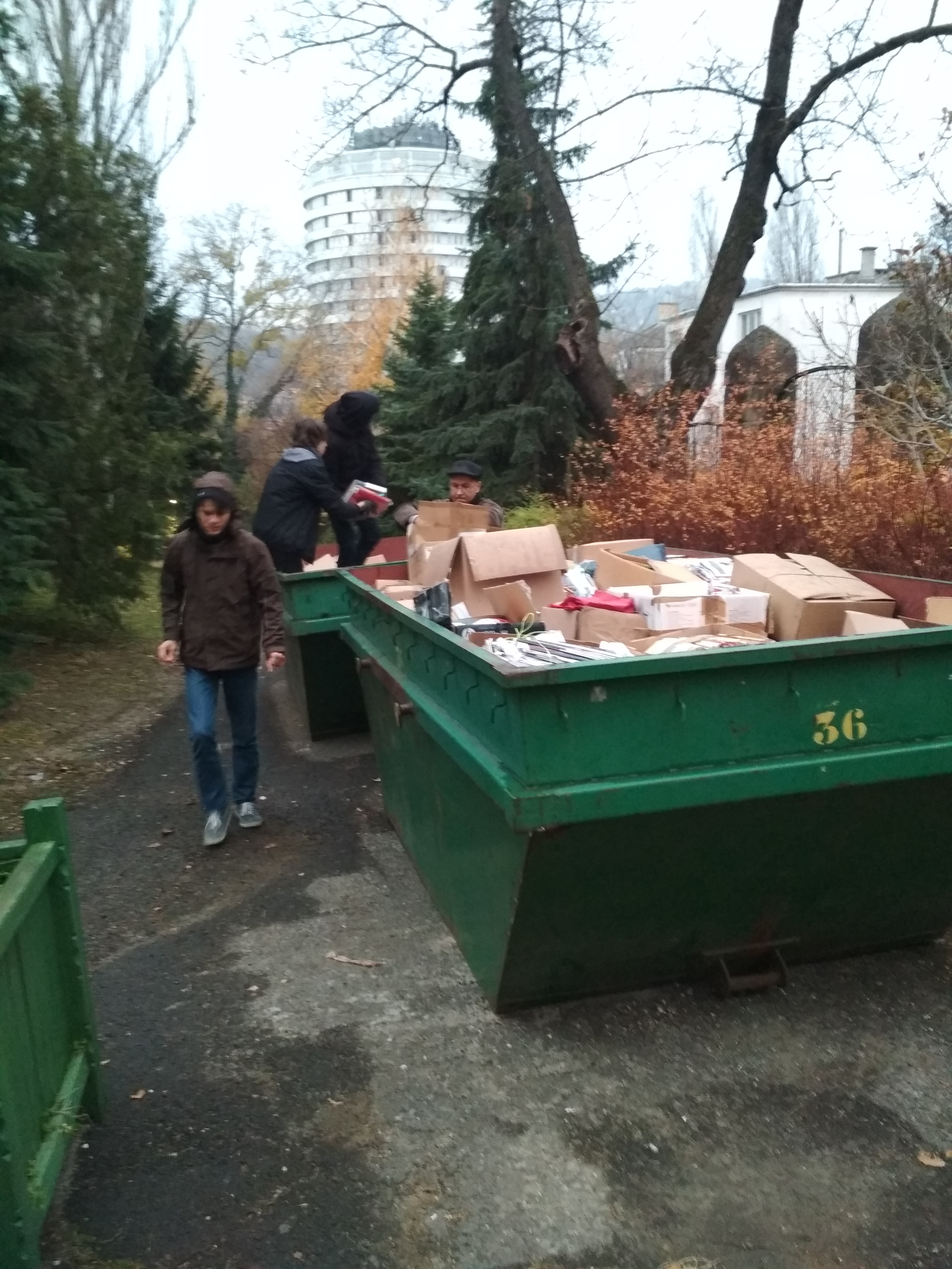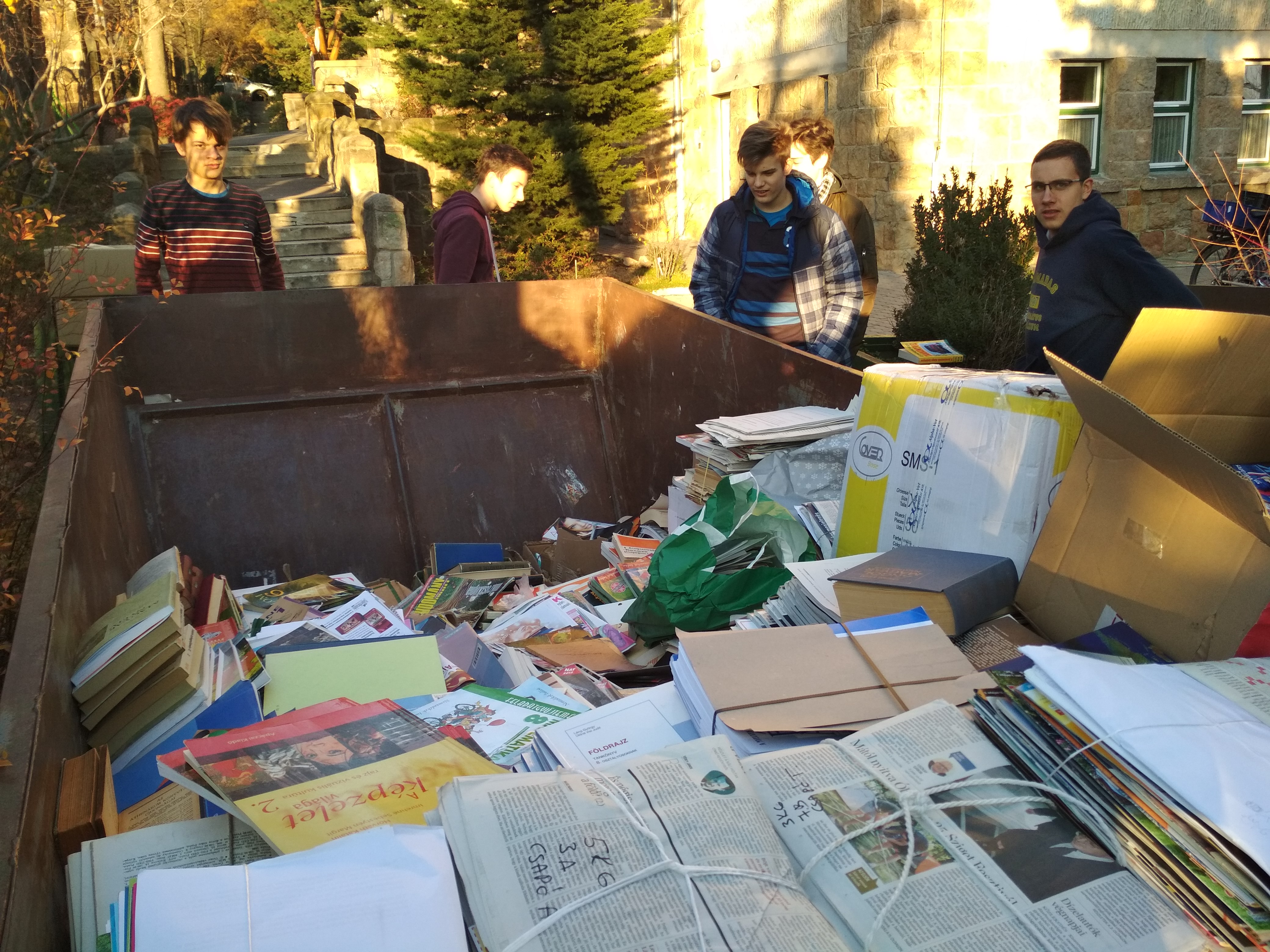 November derekán ebben az esztendőben is sor került az évtizedes múltra visszatekintő papírgyűjtésre. Az időjárás keretet adott a november 13-17. között zajló eseménynek: hétfőn délután esővel kezdődött, és péntek délután esővel végződött a gyűjtés. A búskomor idő kezdetben kedvét szegte a diákoknak és szüleiknek is, úgyhogy az első konténer csak szerdára telt meg, de aztán felgyorsultak az események és az eső elálltával a papír kezdett ömleni.