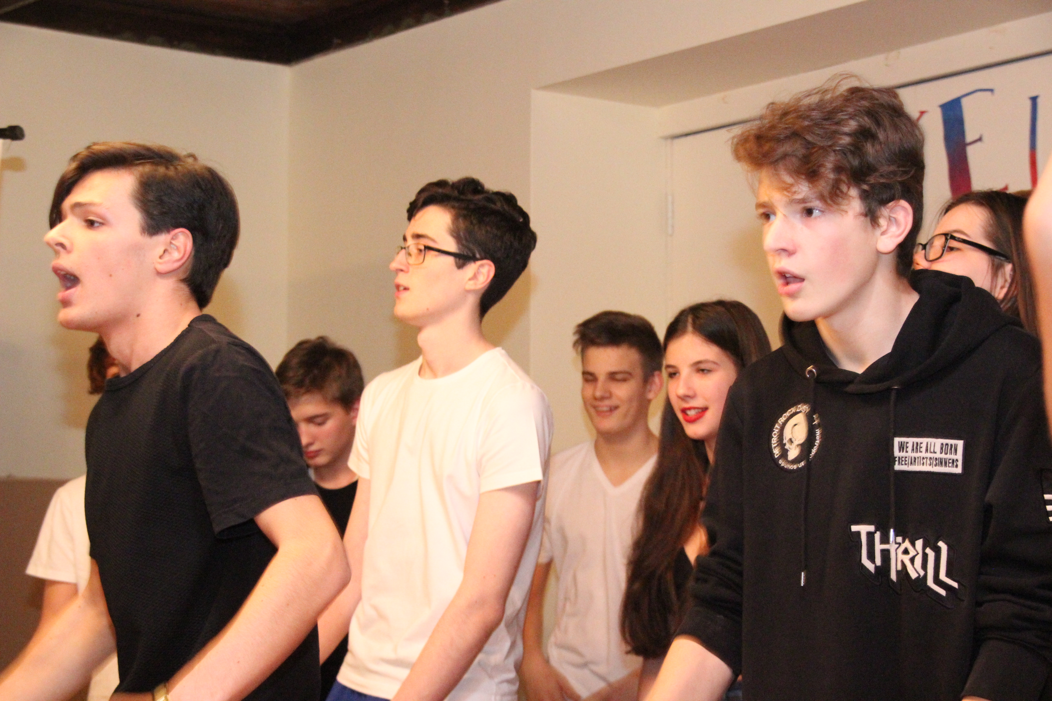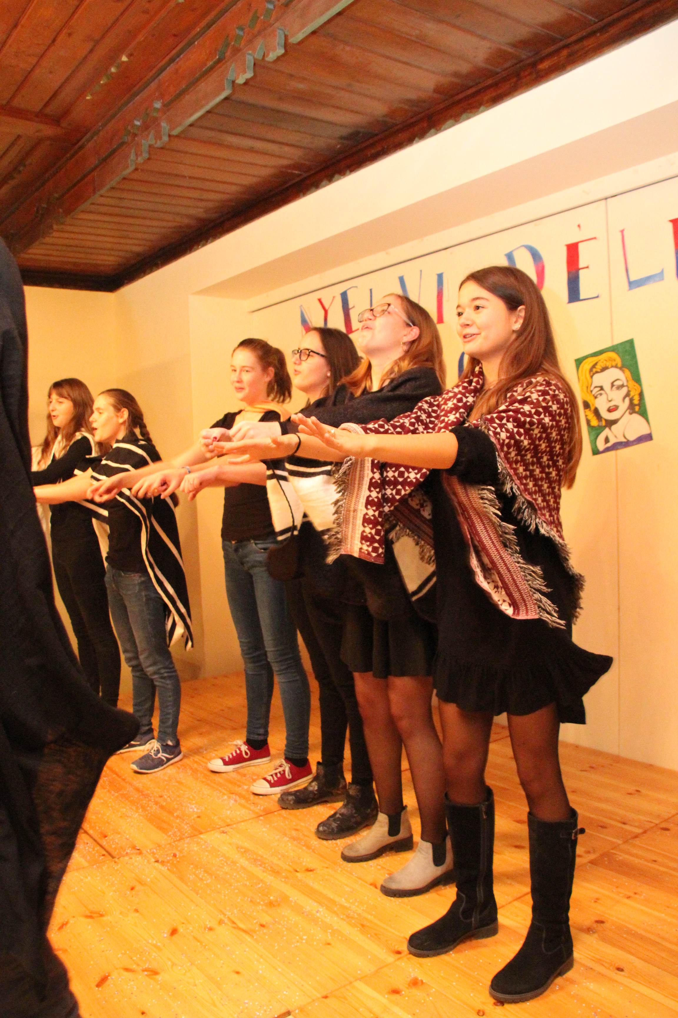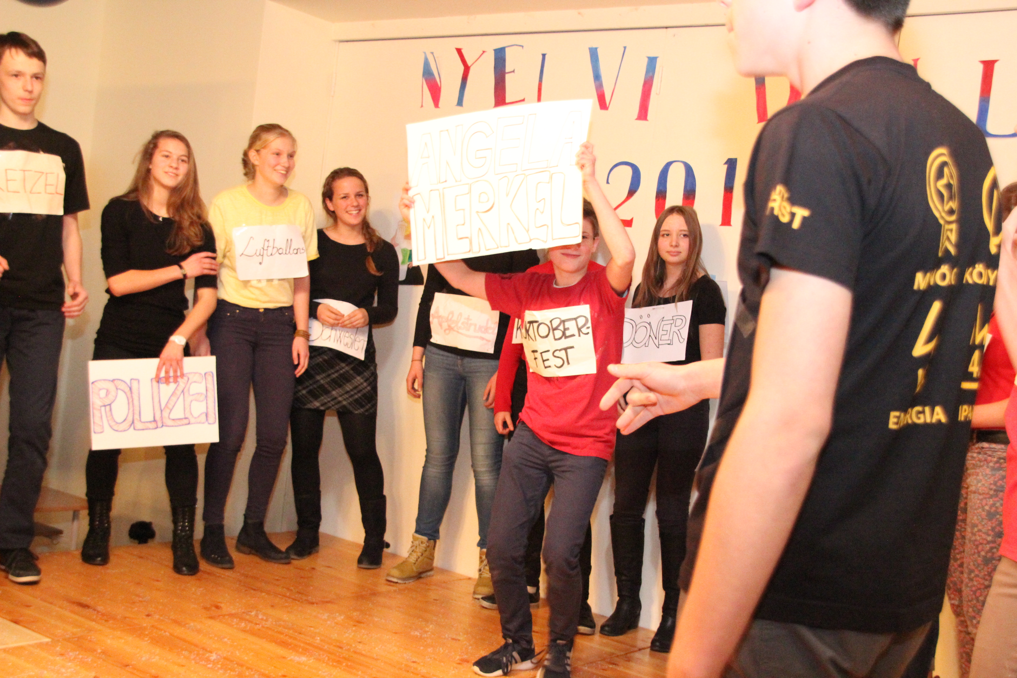 Sok készülés és próba után, december 15-én minden nyelvi csoport bemutathatta végre a produkcióját. Rendhagyó módon nem színdarabot, hanem egy zenés-táncos produkciót kellett színpadra állítani. 28 ötletes, humoros műsorszámot láthattunk. A zsűrit arra kértük, hogy emeljenek ki hármat, aminek egy-egy óriás pizza volt a jutalma, és bizony nem volt egyszerű dolguk. Végül egy németes, egy angolos és egy latinos produkció vitte el a pálmát.